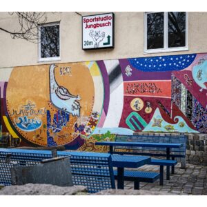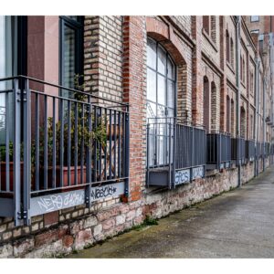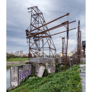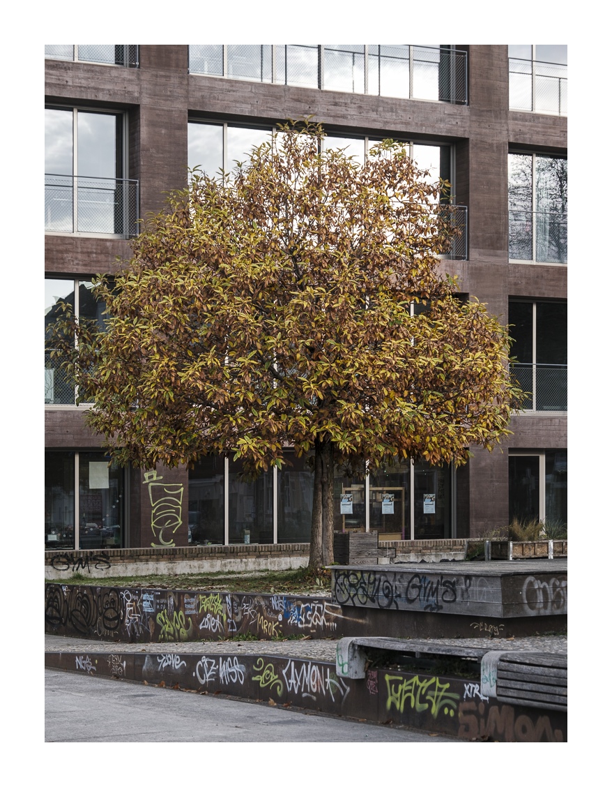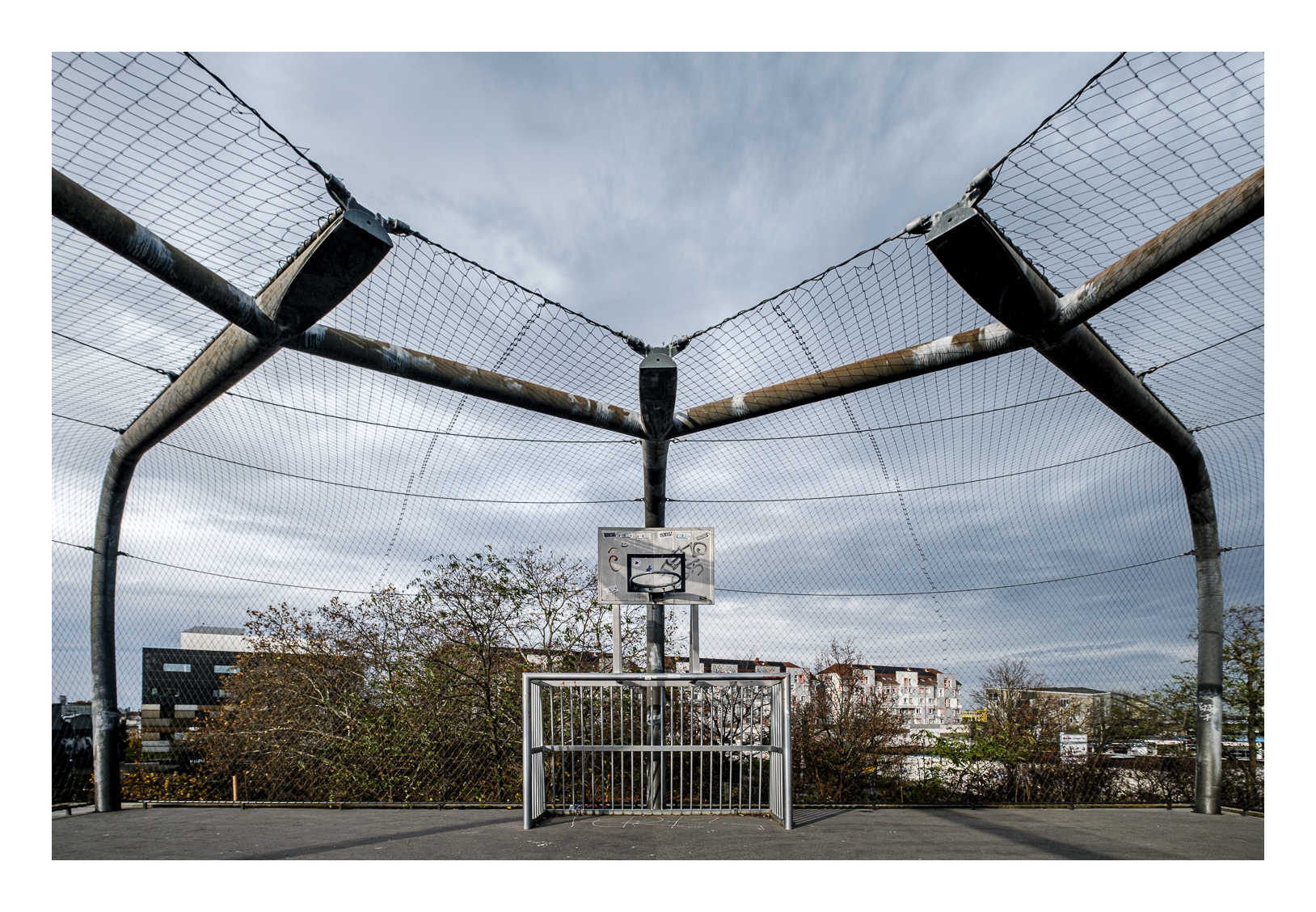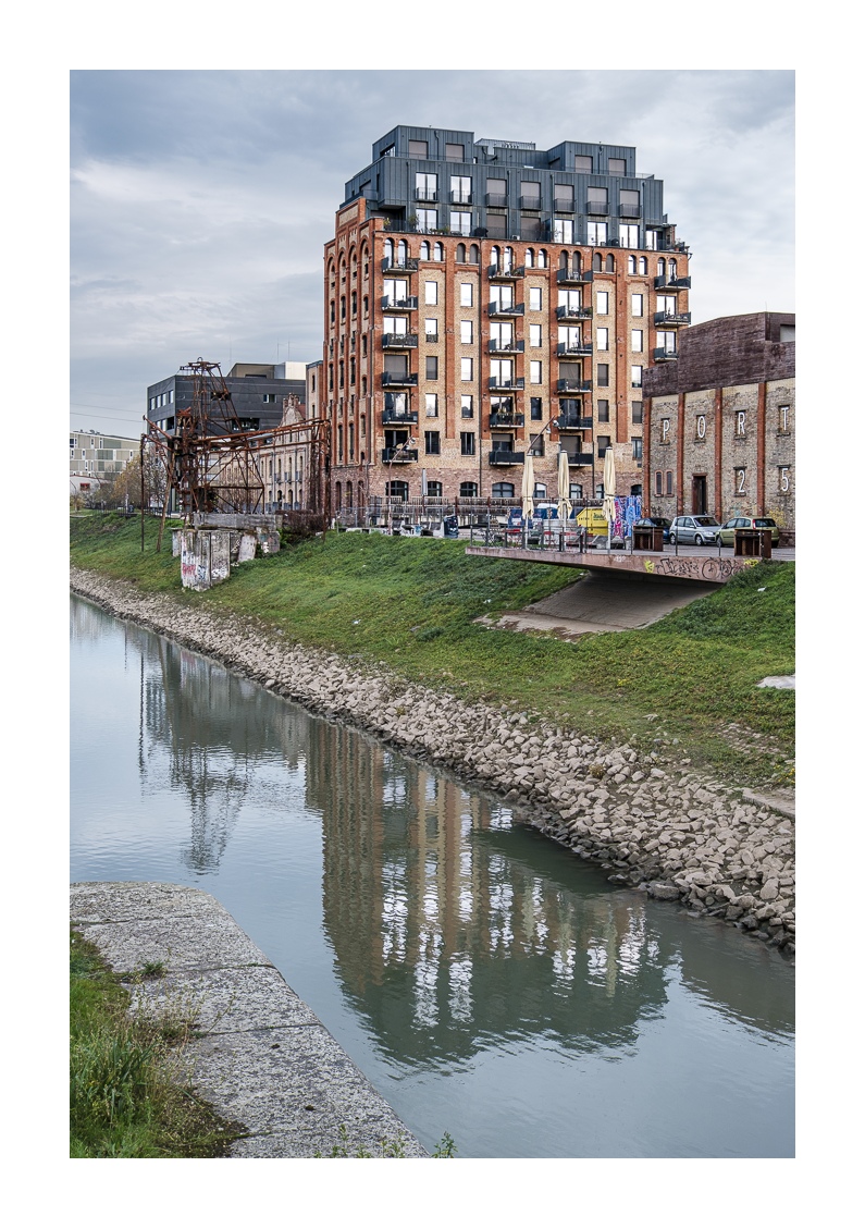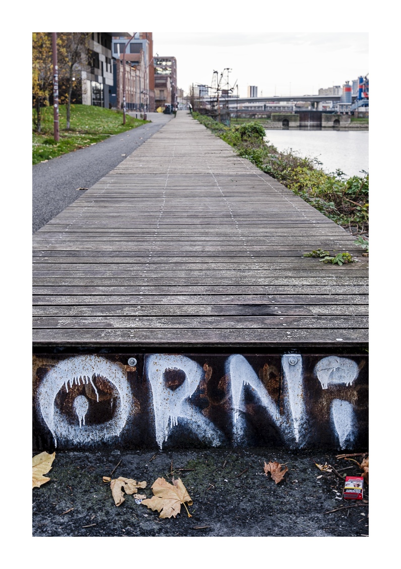 Ich hatte den Mannheimer Stadtteil Jungbusch vorgeschlagen, wo ich vor vor ein paar Wochen abends beim „Nachtwandel“ unterwegs war (-> hier klicken!). In diesem ehemaligen Hafenviertel findet man eigentlich immer interessante Motive und auch diesmal konnte ich mich nicht beschweren. Jedenfalls habe ich ziemlich viel geknipst. Es hat für meinen Geschmack zwar etwas an Licht gefehlt, dafür war der Himmel aber wenigstens einigermaßen strukturiert. Meine Bilder habe ich mit der Fuji-Filmsimulation „Classic Chrome“ entwickelt, die durch ihren Cyan-Ton und die starken Kontraste recht gut zu der eher düsteren Lichtstimmung passt.