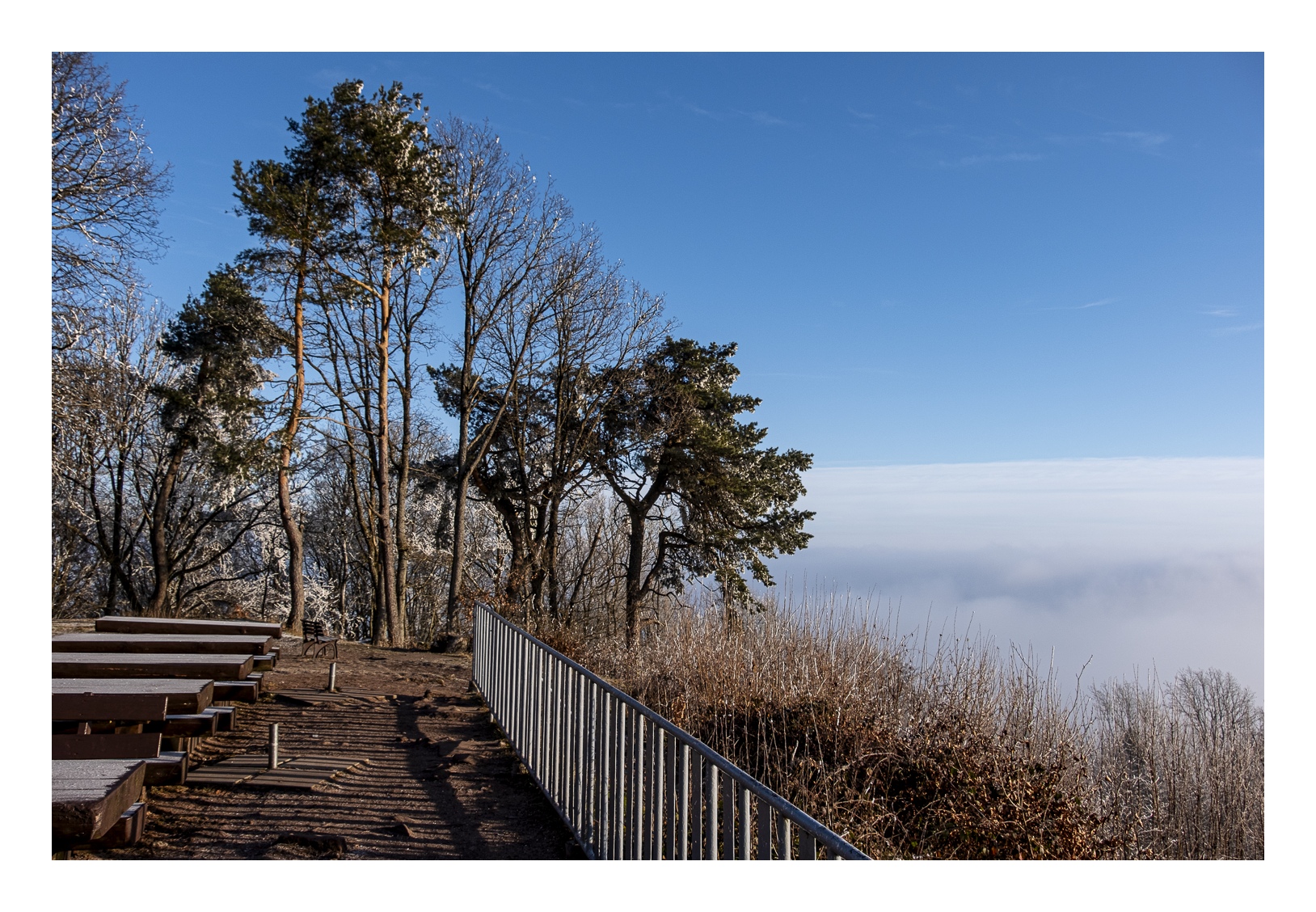 Auch unsere Hoffnung, schöne Nebelfotos aufnehmen zu können, wurde leider auch nicht erfüllt. Die Nebelschicht war zu dicht und grau und versperrte zudem komplett den Blick in Tal. Meine Ausbeute entspricht daher nicht so ganz meinen Erwartungen, aber es war ein besonders schöner Morgen über den Wolken und somit eine durchaus lohnende Tour.