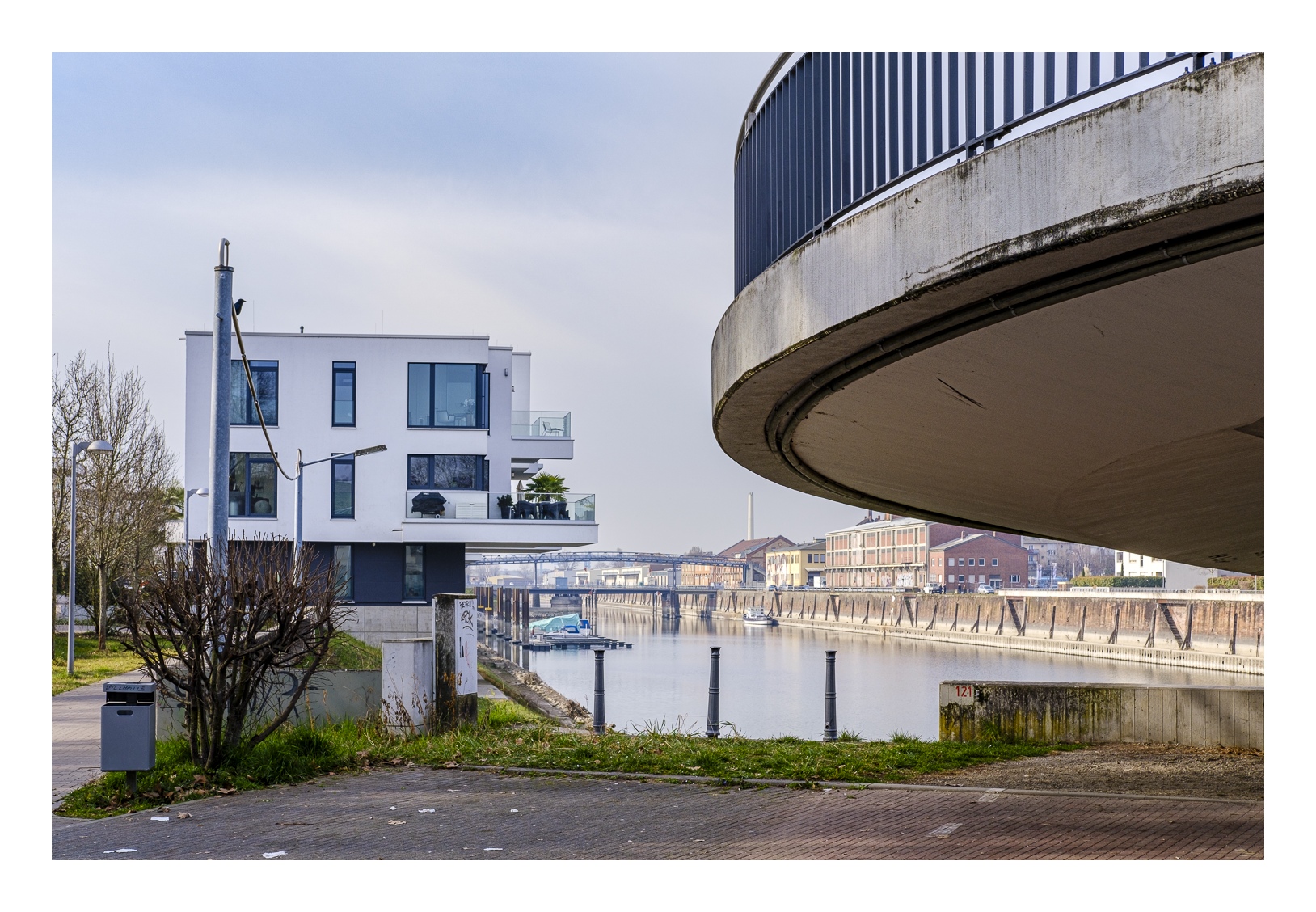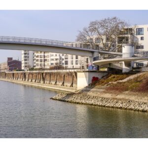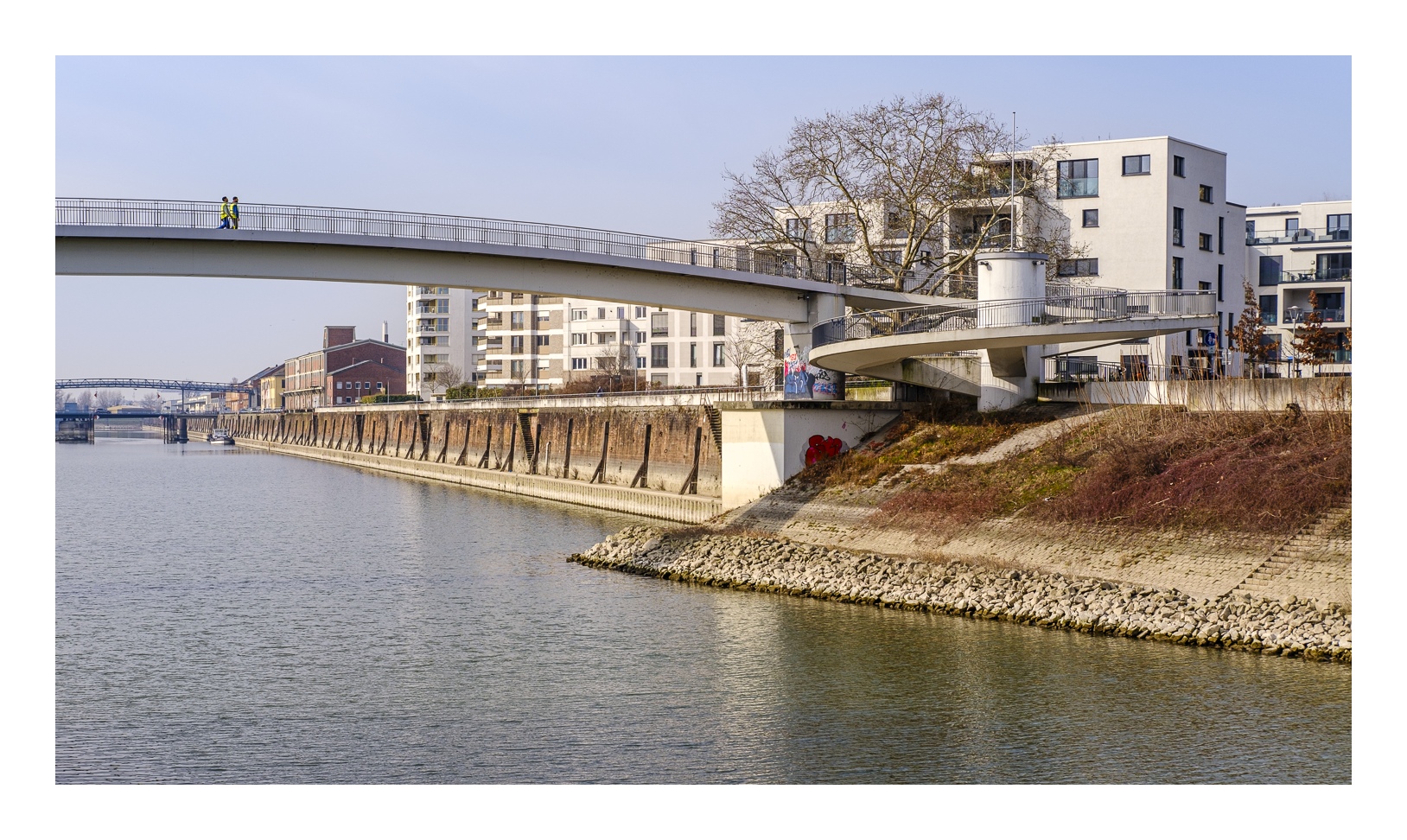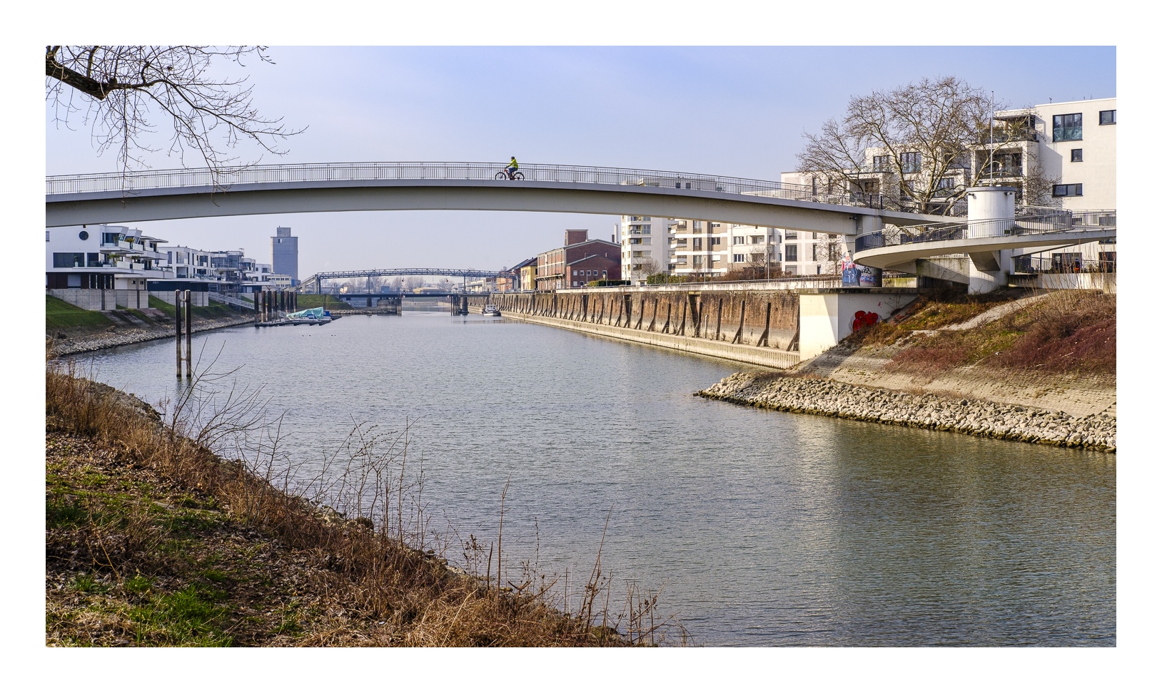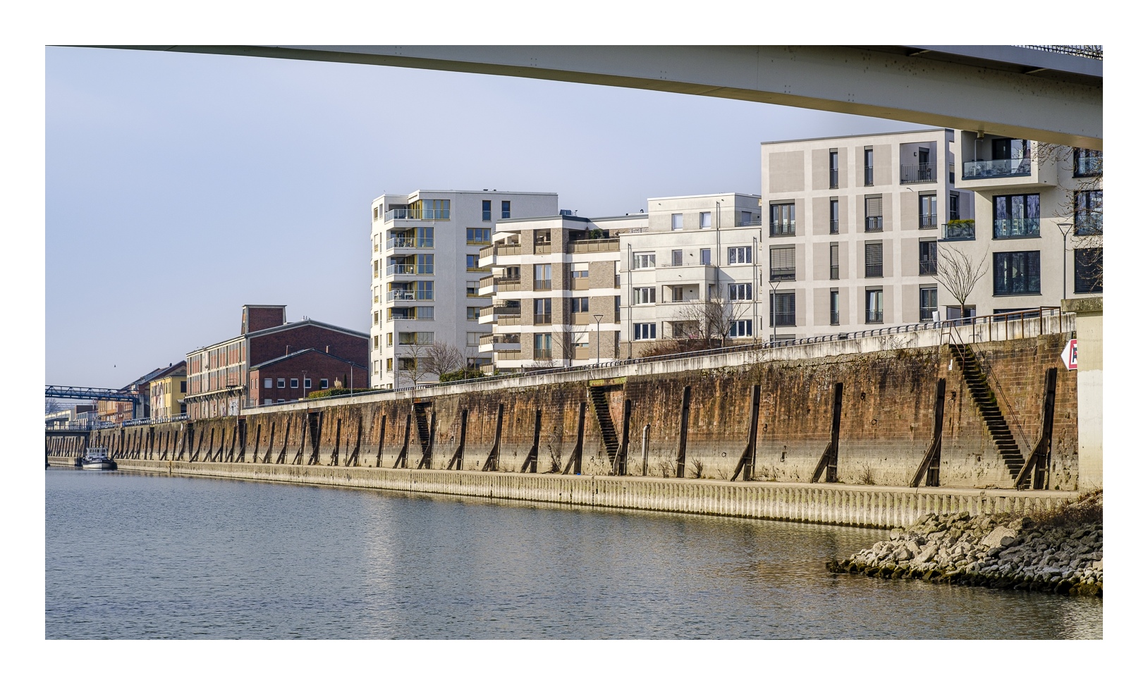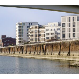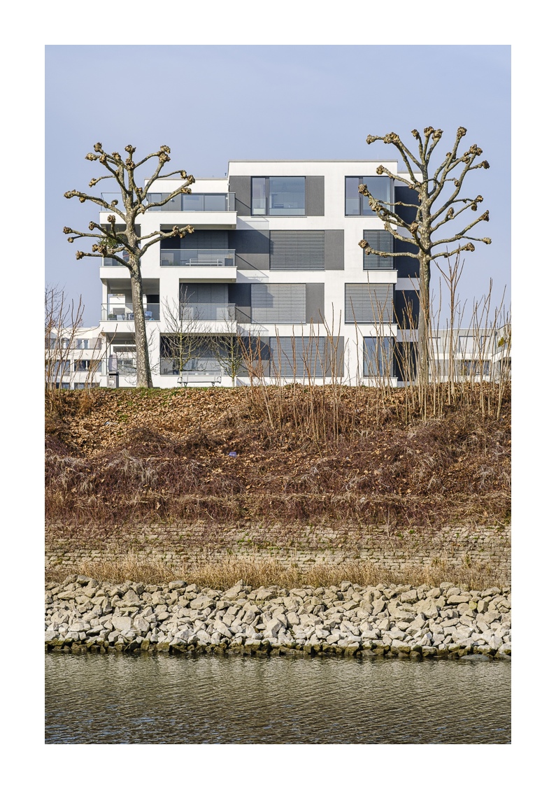 Auf beiden Seiten des Hafenbeckens wurden die ehemaligen Lagerhäuser in den letzten 20 Jahren durch eine moderne Wohnbebauung ersetzt. Offensichtlich ein gelungenes Projekt, denn diese Häuser und Wohnungen in bester Lage am Rhein sind trotz ihres hohen Preises sehr begehrt.