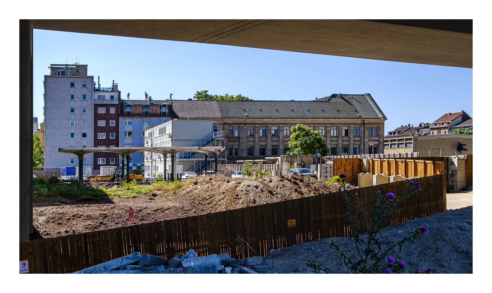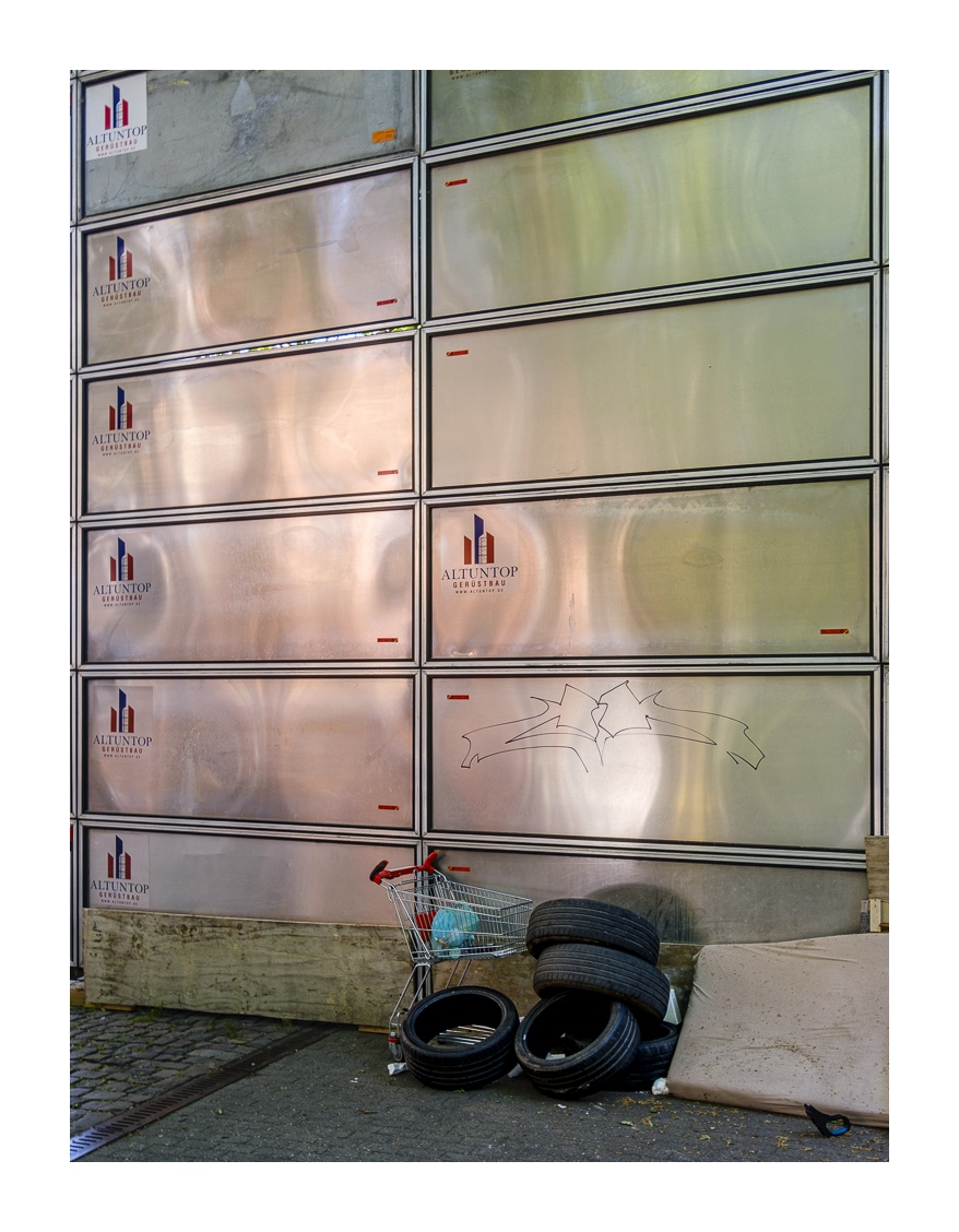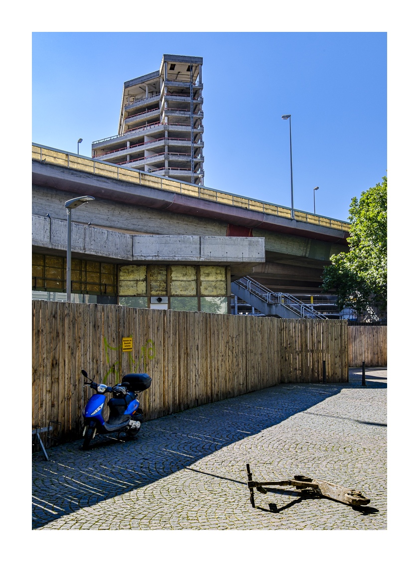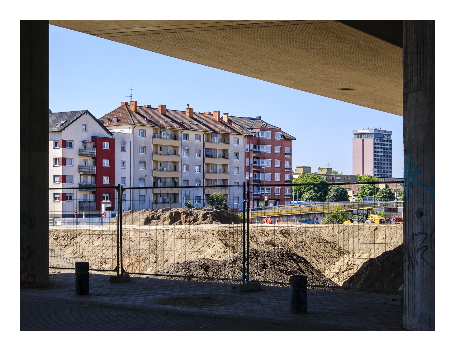 Bei strahlendem Sonnenschein sind Gerd (www.gerd-stauder.de) und ich heute morgen losgefahren. Geparkt haben wir in der Rhein-Galerie und uns länger als geplant auf dem oberen Parkdeck aufgehalten. Entlang der Rhein-Galerie ging es dann in nördlicher Richtung durch das Zollhof-Gelände bis in den Hemshof. Von dort sind wir zur besagten Großbaustelle spaziert, von der das meiste leider hinter hohen Bretterzäunen versteckt ist. Eine ganz ähnliche Runde hatten wir im Juli letzten Jahres schon einmal gedreht (-> klick!), konnten aber trotzdem auch diesmal einige neue Motive entdecken. Nach gut zwei Stunden hatten wir genug und sind zum Auto zurückgekehrt . Zeit für eine Einkehr in unserem Stamm-Café war natürlich auch noch. Alles in allem eine interessante Tour, die uns richtig Spaß gemacht hat.