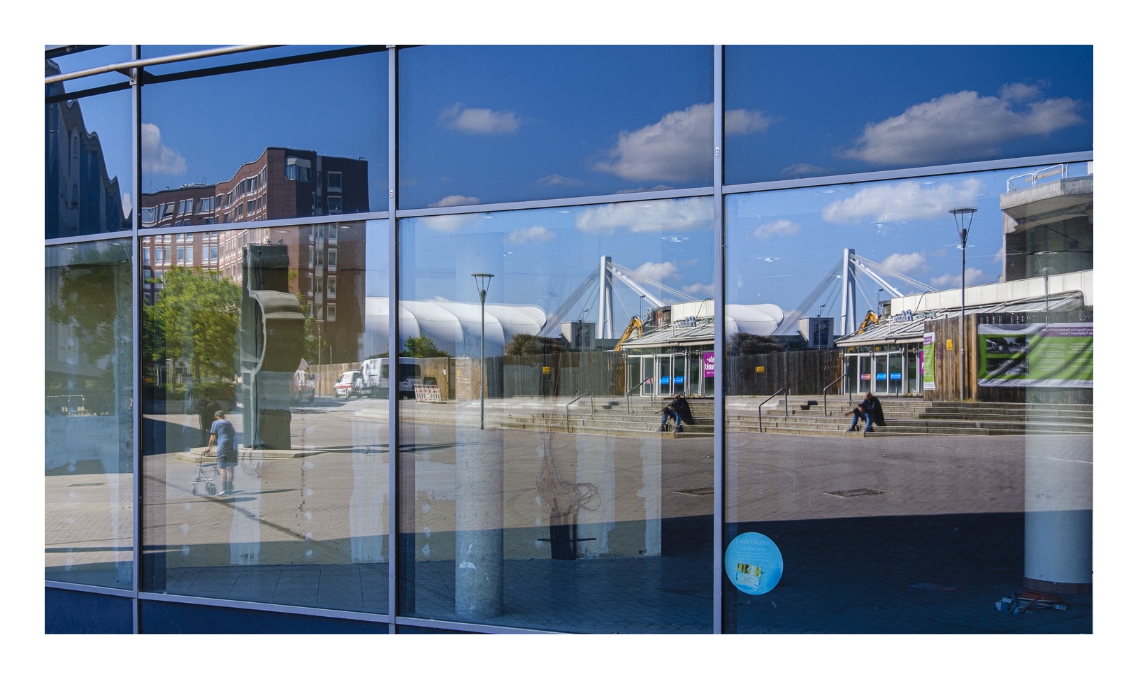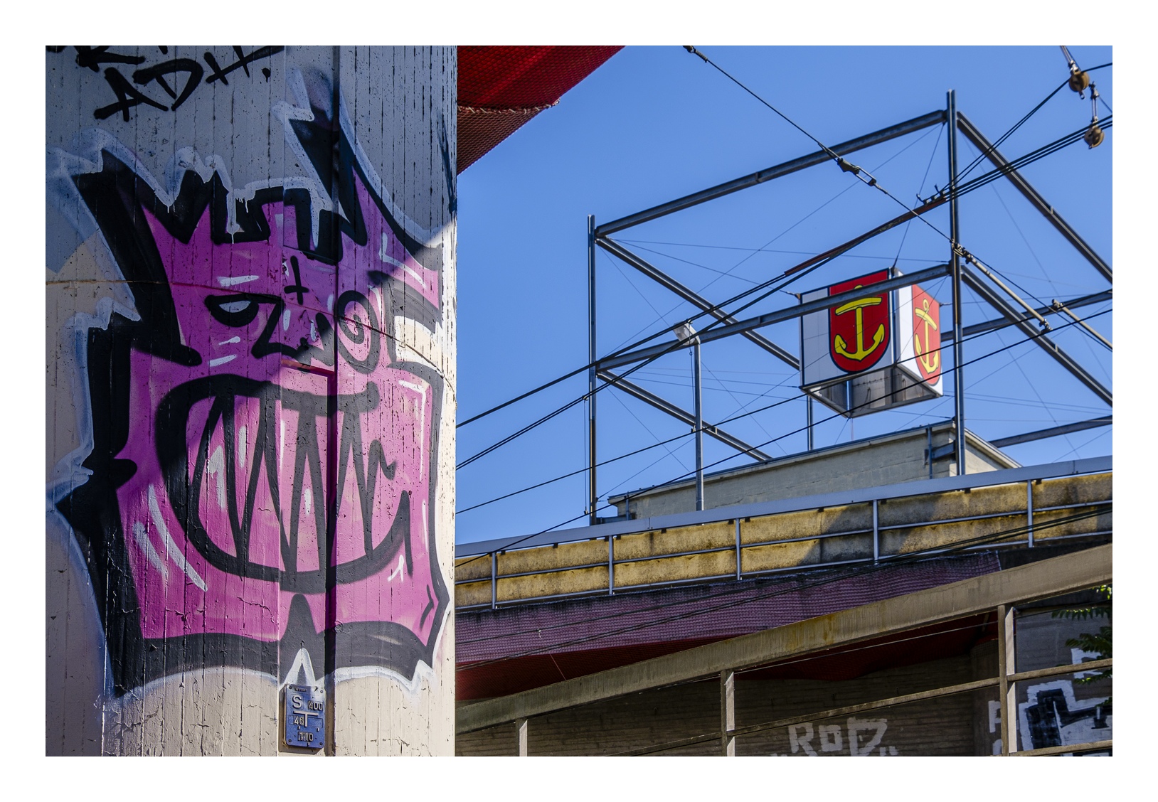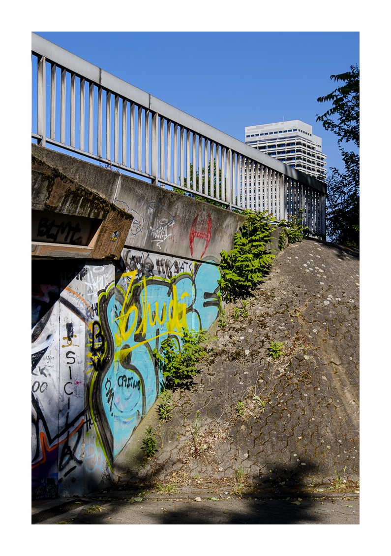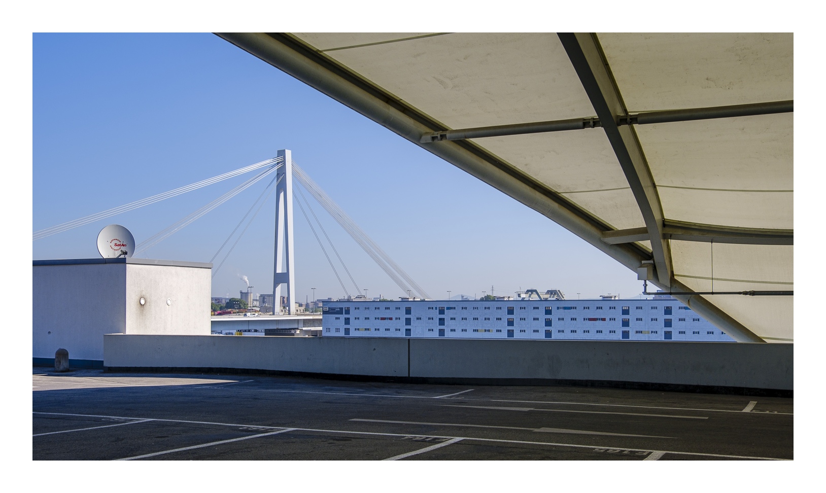 Bei strahlendem Sonnenschein sind Gerd (www.gerd-stauder.de) und ich heute morgen losgefahren. Geparkt haben wir in der Rhein-Galerie und uns länger als geplant auf dem oberen Parkdeck aufgehalten. Entlang der Rhein-Galerie ging es dann in nördlicher Richtung durch das Zollhof-Gelände bis in den Hemshof. Von dort sind wir zur besagten Großbaustelle spaziert, von der das meiste leider hinter hohen Bretterzäunen versteckt ist. Eine ganz ähnliche Runde hatten wir im Juli letzten Jahres schon einmal gedreht (-> klick!), konnten aber trotzdem auch diesmal einige neue Motive entdecken. Nach gut zwei Stunden hatten wir genug und sind zum Auto zurückgekehrt . Zeit für eine Einkehr in unserem Stamm-Café war natürlich auch noch. Alles in allem eine interessante Tour, die uns richtig Spaß gemacht hat.