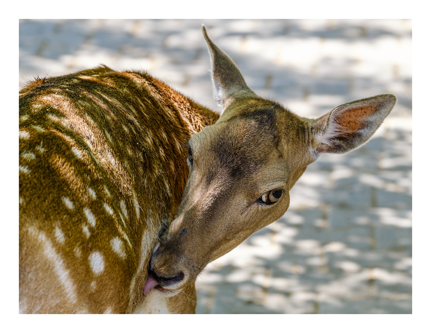 Tolle Tierfotos kann man in einer solchen Anlage nicht erwarten. Die künstlich geschaffene Umgebung lässt sich halt nicht ausblenden, ebensowenig die Zäune und Glasscheiben. Als Zugabe sorgt die knallige Sonne für heftige Kontraste, so dass die Belichtung ganz schön schwierig wird. Viele Tiere haben sich zudem in den Schatten zurück gezogen und sind daher viel zu weit entfernt. Aber egal – man muss halt mit dem zurecht kommen, was da ist. Und das kann auch Spaß machen. Es war jedenfalls ein besonders schöner Tag und ein paar ganz ansehnliche Bilder sind auch entstanden.