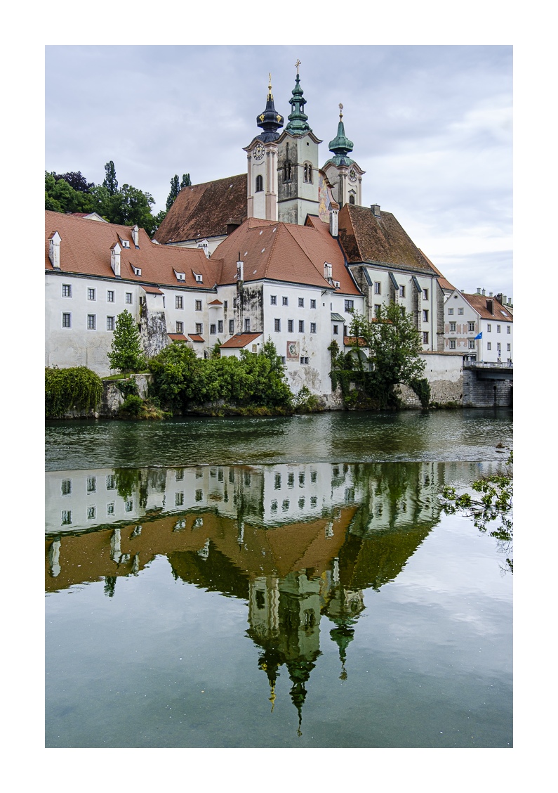Den einzigen regnerischen Tag unseres Österreich-Urlaubs haben wir für einen Ausflug nach Steyr genutzt. Die Stadt liegt am Übergang der nördlichen Kalkalpen zum Alpenvorland. Hier mündet der Fluss Steyr in die Enns. Steyr ist weithin bekannt durch die gleichnamigen Traktoren, die allerdings seit 1974 im nahegelegenen St. Valentin produziert werden.