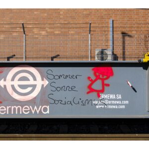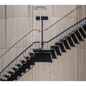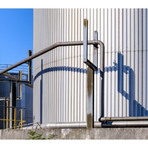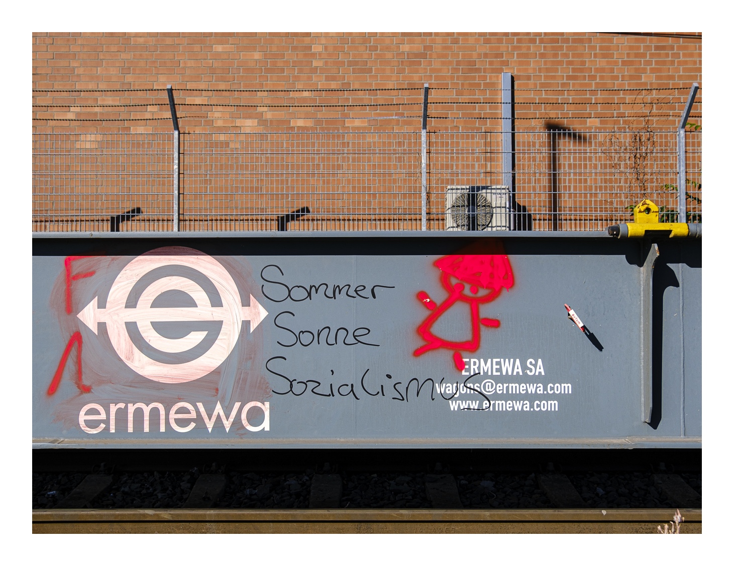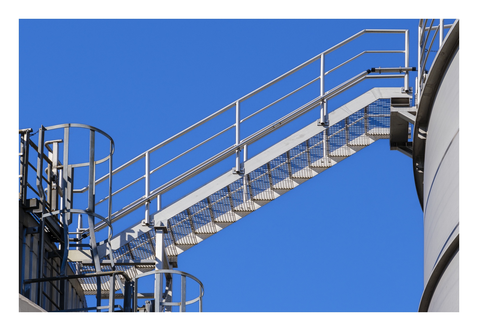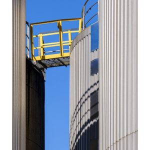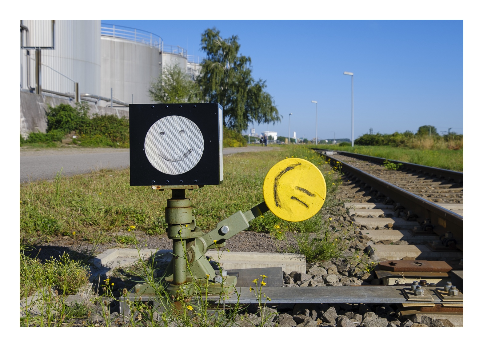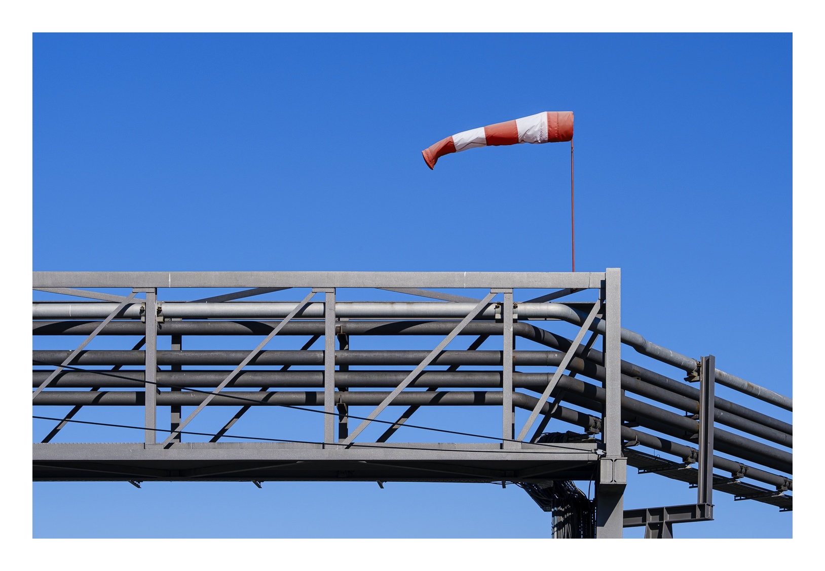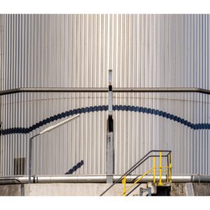 Der Weg von unserem Parkplatz bei der Wasserschutzpolizei bis zu dem besagten Punkt ist nur ein paar hundert Meter lang, aber auf denen gibt es eine Menge zu sehen und zu fotografieren, vor allem riesige Tanklager, die noch ziemlich neu aussehen. Die Sonne bescherte uns interessante Lichteffekte und harte Schatten auf den glänzenden Oberflächen der riesigen Tanks. Das habe wir natürlich fleißig ausgenutzt. Ich muss zugeben, dass meine Erwartungen an die fotografische Ergiebigkeit dieses Standortes weit übertroffen wurden und so habe ich viel mehr Bilder gemacht, als ich ursprünglich vorhatte. Zu Hause am Computer hat sich das Ganze dann etwas relativiert, denn vieles erschien mir doch zu wenig aussagekräftig. Trotzdem – es war eine interessante kleine Tour und eine gute Ergänzung unserer Unternehmung vom Freitag.