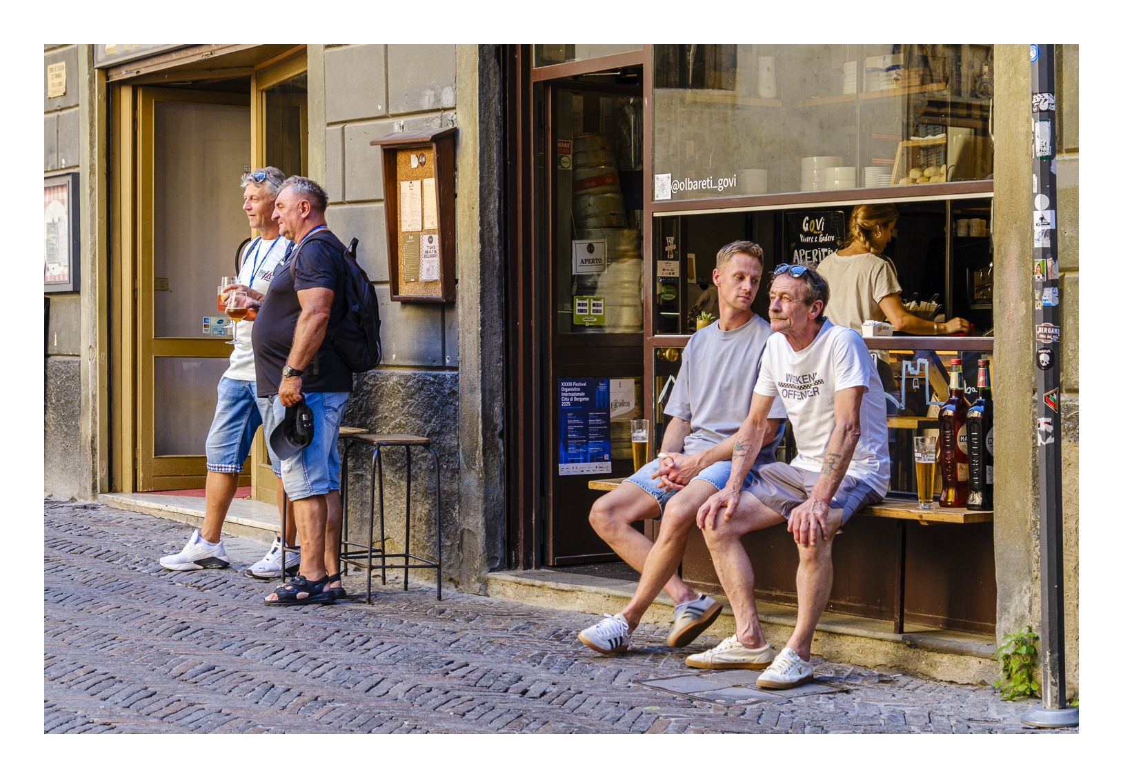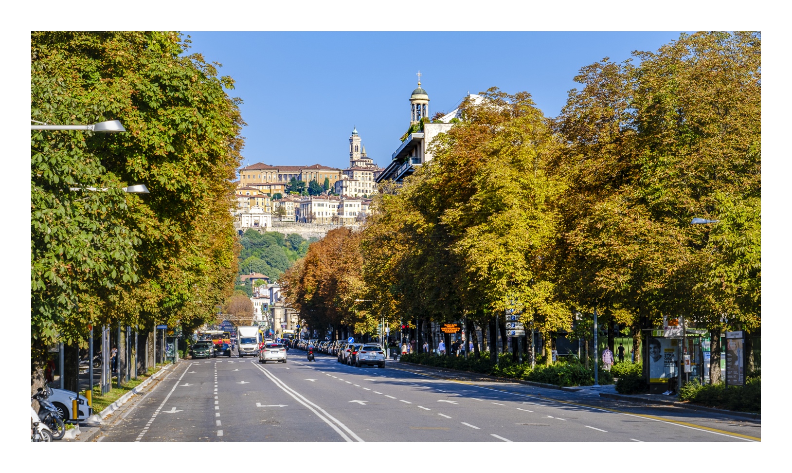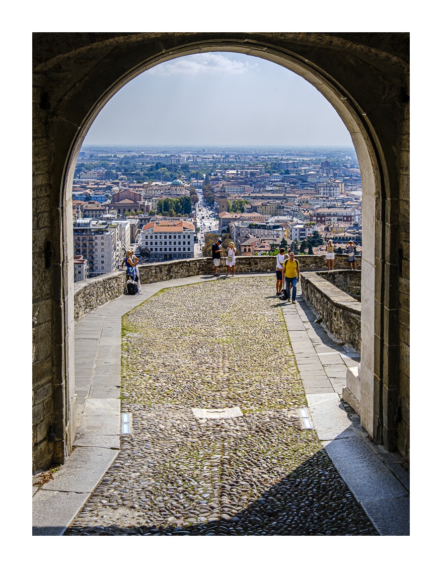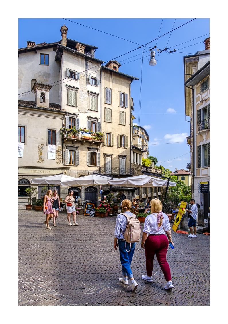 Informationen zu Bergamo gibt es im Internet genug (z.B. bei Wikipedia), daher hier nur ganz kurz ein paar Erläuterungen. Bergamo liegt am Übergang der Alpen zur Po-Ebene ca. 50 km nordöstlich von Mailand. Die Stadt ist deutlich zweigeteilt in die „Città Alta“ (Oberstadt) und die „Città Bassa“ (Unterstadt). Letztere liegt größtenteils in der Ebene und ist neueren Ursprungs. Hier gibt es großzügige Plätze mit repräsentativen Bauten, aber auch verwinkelte Gassen, die mittelalterlichen Ursprungs sind. Und genau dort ist tagsüber und vor allem abends jede Menge los. Es gibt eine Fülle von Lokalen für jeden Geschmack und Geldbeutel mit Musik und guter Laune. Echt super!