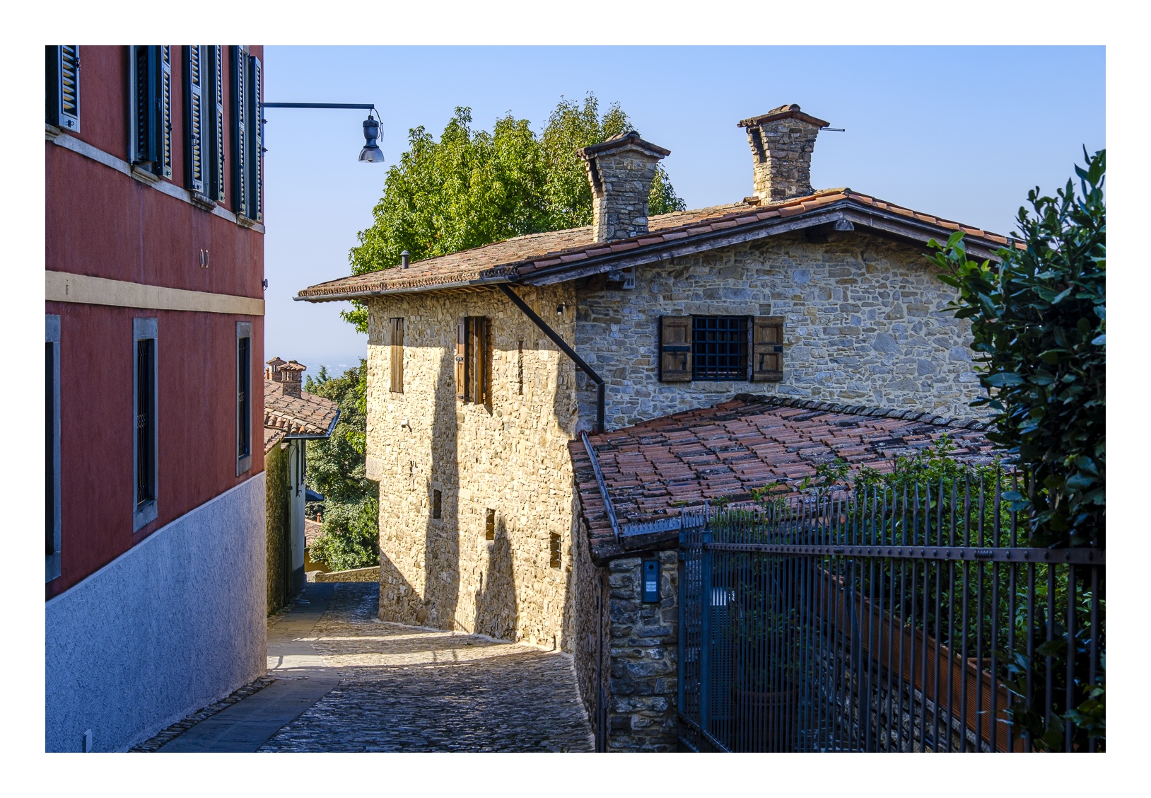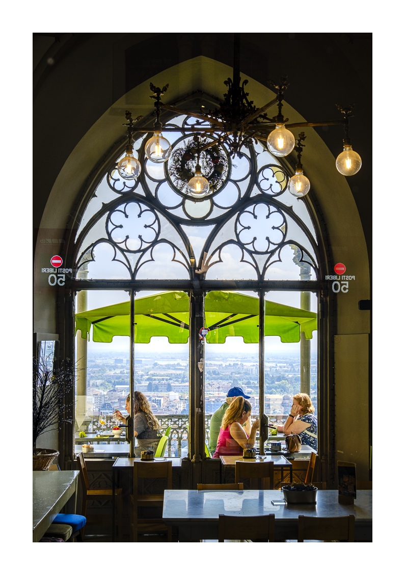 Eine weitere Standseilbahn führt von der Altstadt zum oberhalb gelegenen Stadtteil San Vigilio, der von einer Burg überragt wird. Ihren Besuch sollte man sich aber für den Nachmittag aufheben, denn vormittags liegt die Città Vecchia im Gegenlicht und es entstehen nur flaue Fotos.