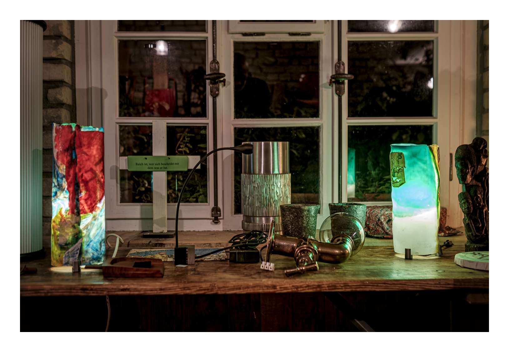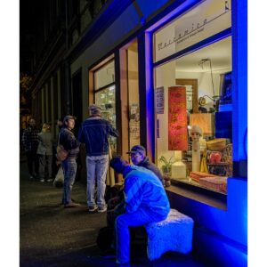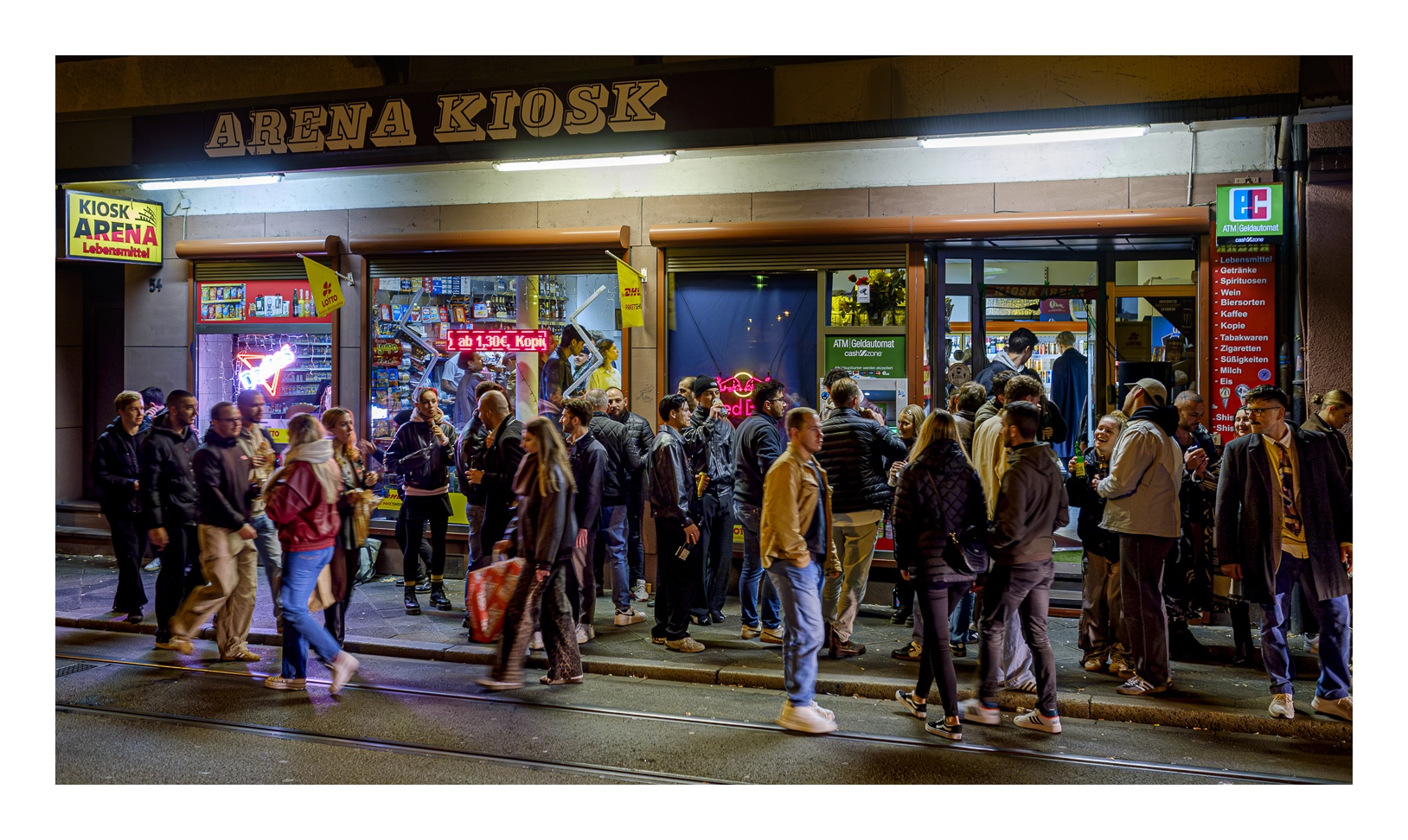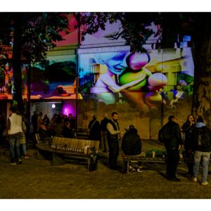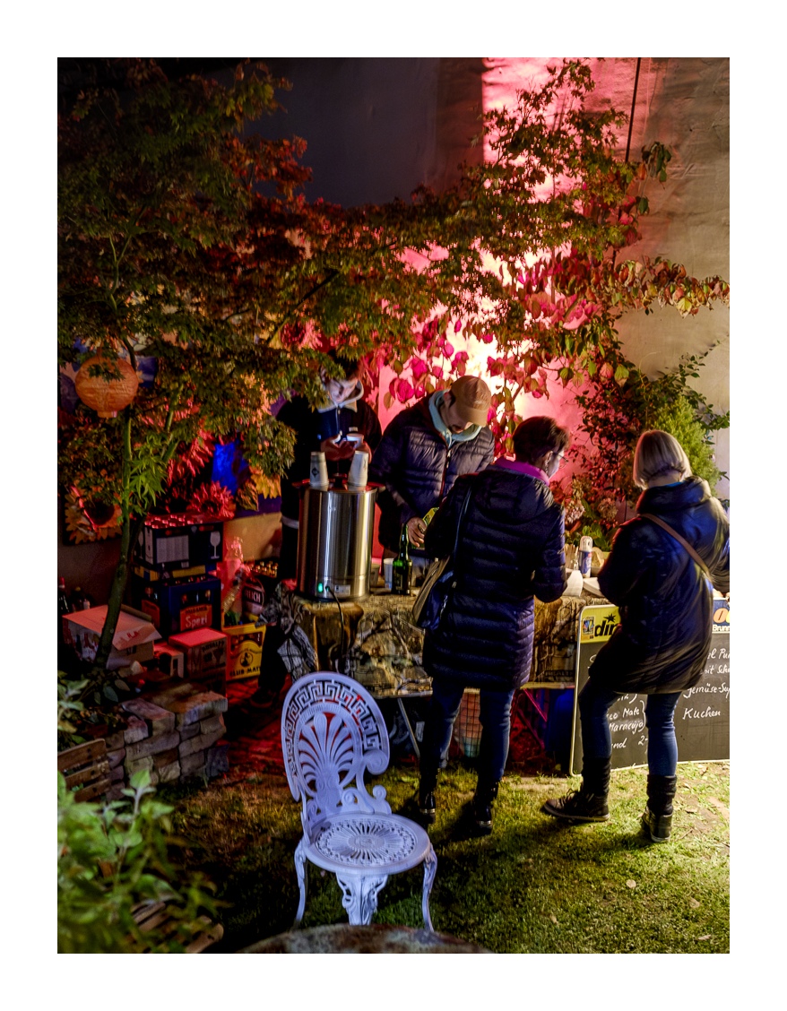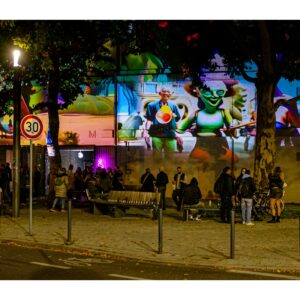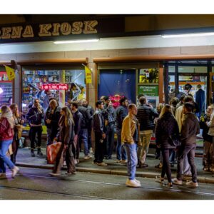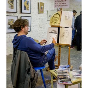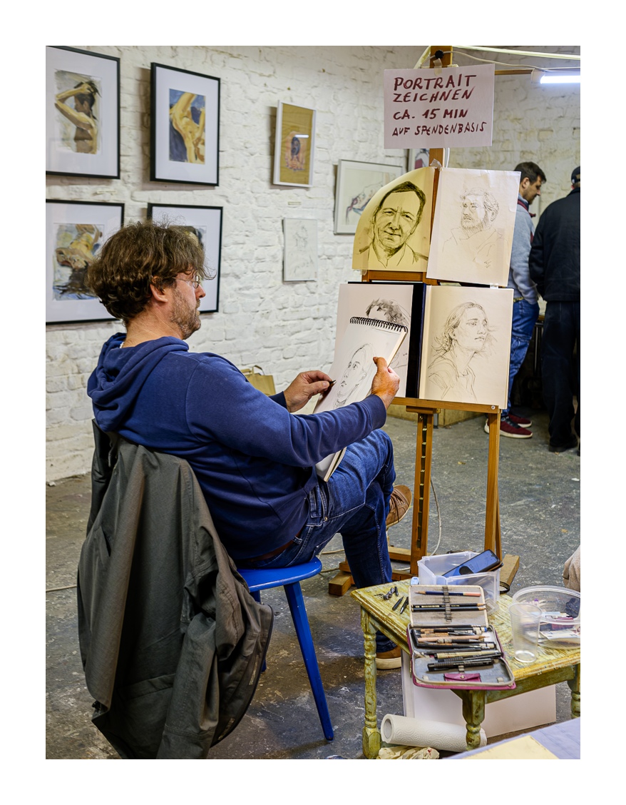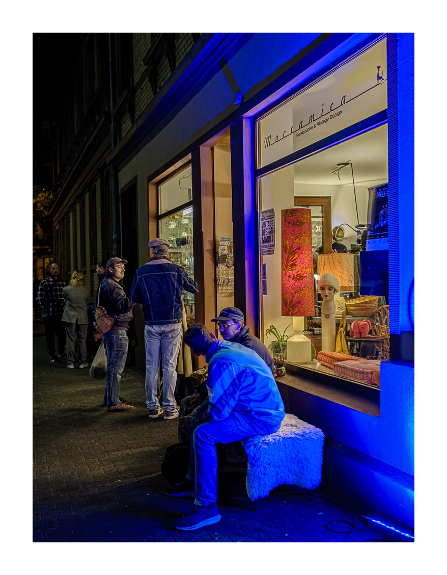 Und jetzt kommt das Aber: Die angekündigte „Nacht der offenen Ateliers“ konnte ich in dieser Veranstaltung nicht erkennen. Es waren nämlich nur noch wenige Ateliers dabei. Vor der Corona-Pause sah das noch ganz anders aus. Sogar große Veranstaltungsorte wie die Alte Feuerwache sind seither nicht mehr vertreten. Sehr schade! Es gab zwar einige Kunstausstellungen, wie zum Beispiel in den „Katakomben“ des Alten Volksbads, aber auch die konnten mich nicht so recht vom Hocker reißen. Manche fand ich sogar etwas lieblos in der Präsentation. Mit dabei waren – wie schon im letzten Jahr – eine Reihe von Second-Hand- und Vintage-Läden. Das Geschehen spielte sich zum großen Teil auf der Straße vor einigen Kiosken und Kneipen ab. Da gab es (Techno-)Musik, viele junge Leute und gute Stimmung. Nach meinem Empfinden wandelt sich diese Veranstaltung immer mehr zu einem „Kneipen-Festival“. Das ist ja auch in Ordnung, es entspricht nur nicht mehr so ganz meiner Vorstellung von einer Nacht der offenen Ateliers.