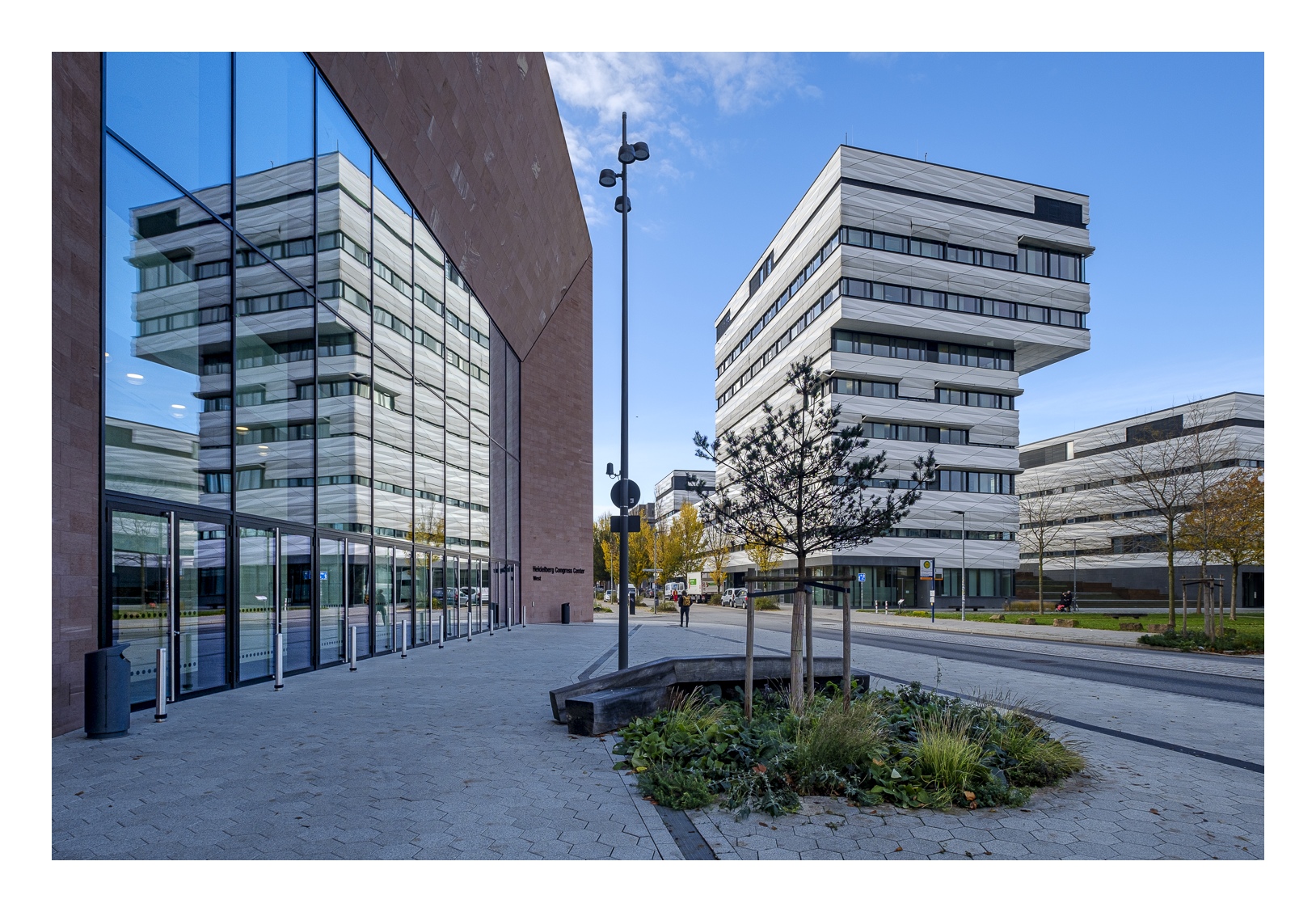 Zuletzt war ich vor gut acht Jahren zum Fotografieren in der Bahnstadt, als die erste Bauphase gerade fertiggestellt war. Jetzt hatte Gerd (www.gerd-stauder.de) die Idee, wieder einmal hinzufahren. Am Montagmorgen haben wir es wahr gemacht. Seit unserem letzten Besuch ist die Siedlung ganz schön gewachsen. Einer der größten neu geschaffenen Gebäudekomplexe ist das neue Heidelberger Kongresszentrum. Parkplätze gibt es entlang der Straßen jede Menge, aber sie sind unfassbar teuer (3€/Std.). Dank der digitalen Parkraumüberwachung sollte man es nicht darauf ankommen lassen.