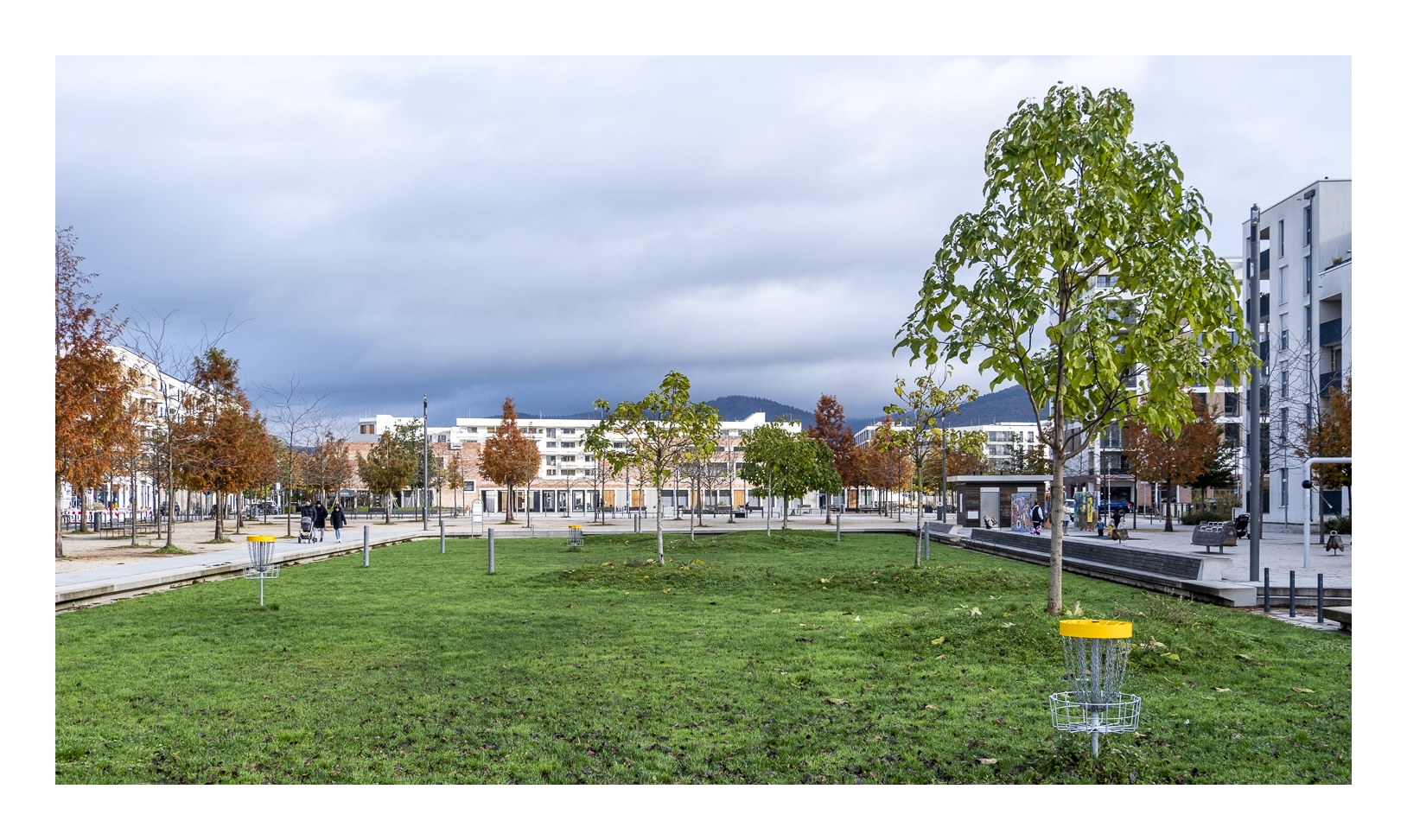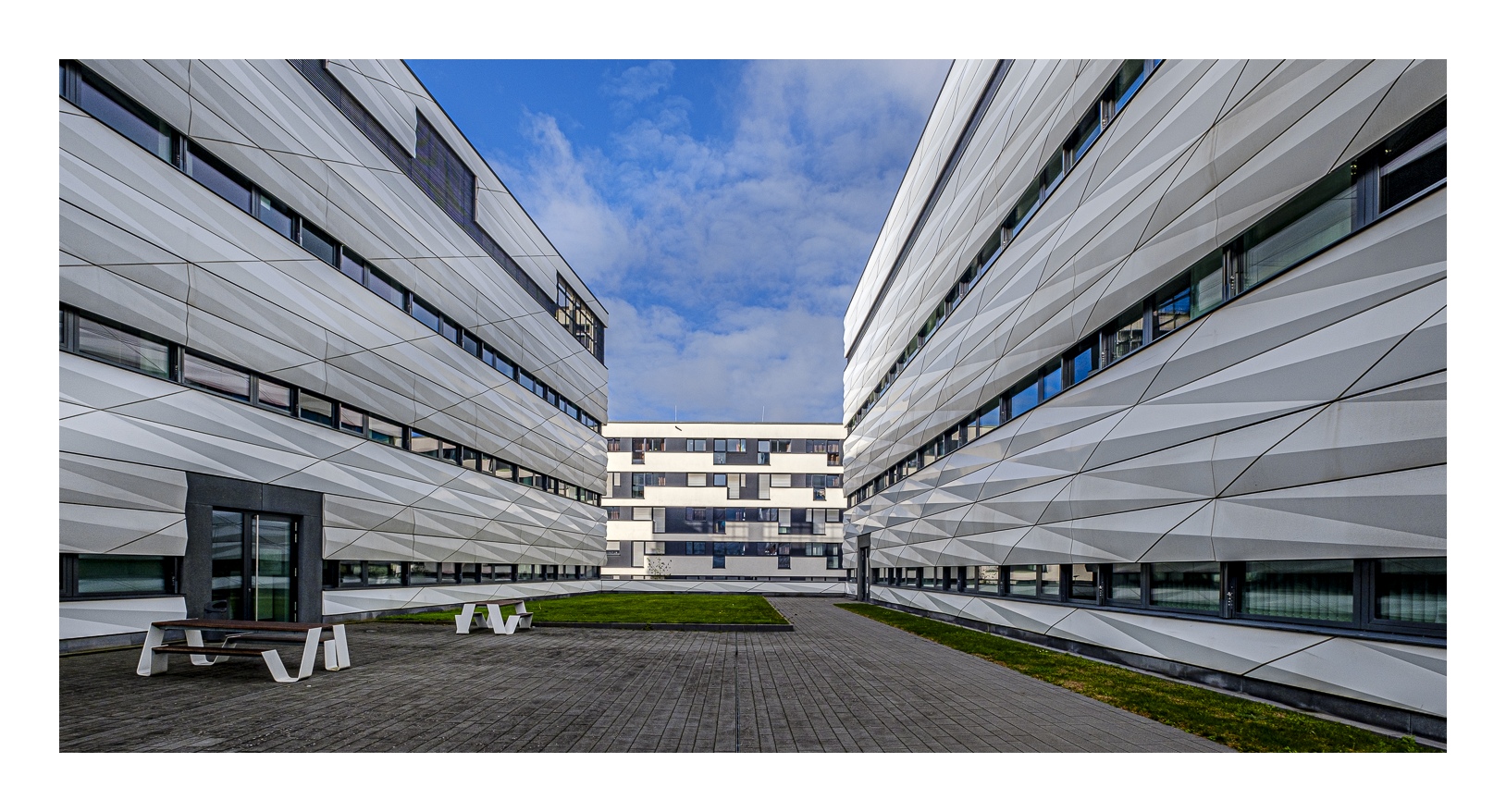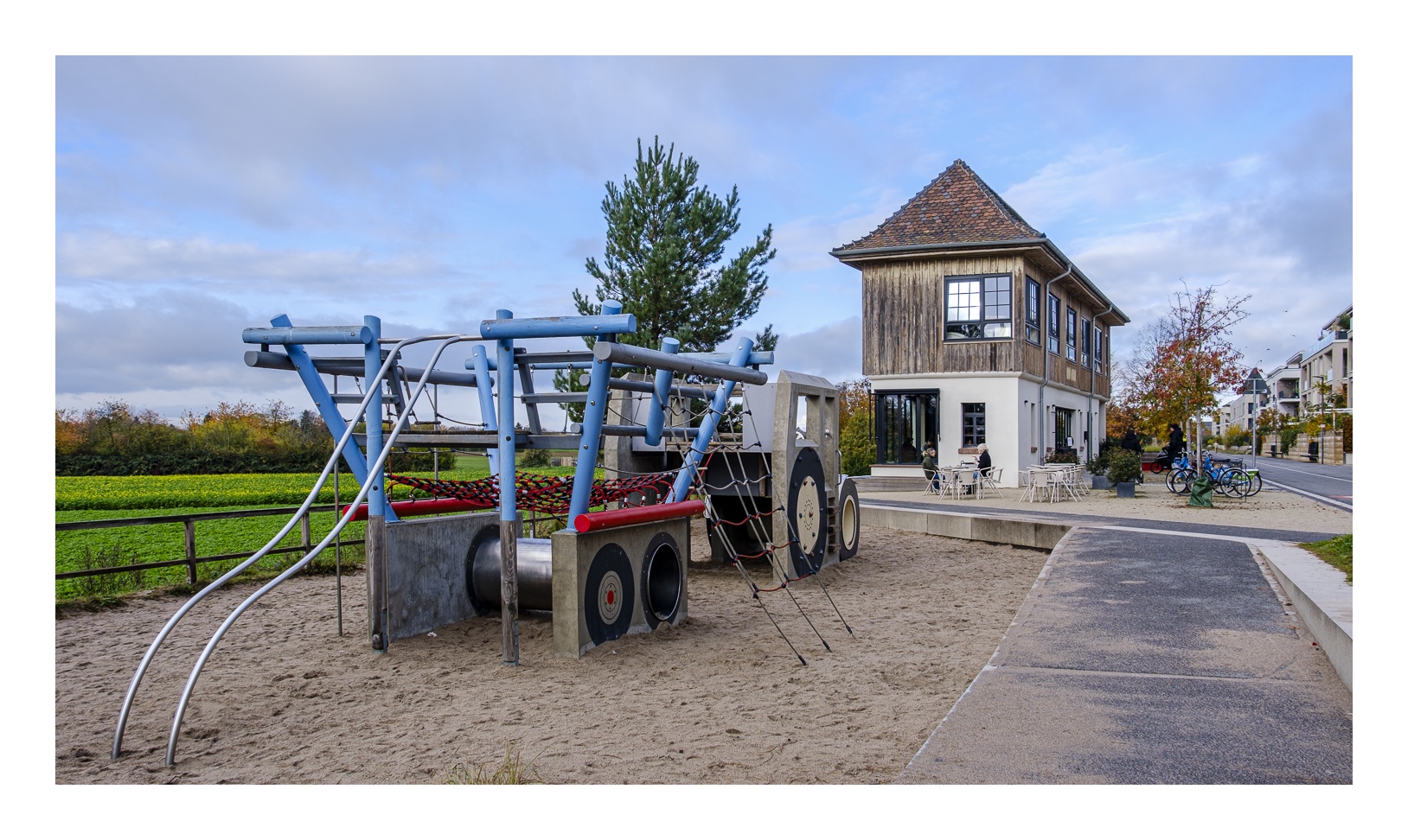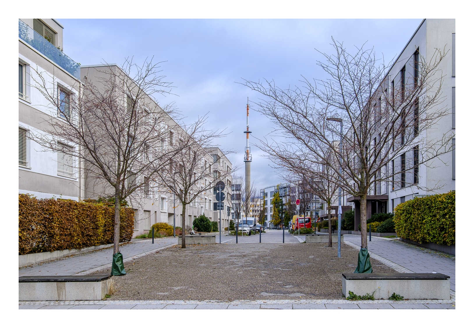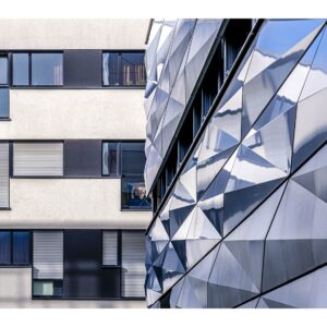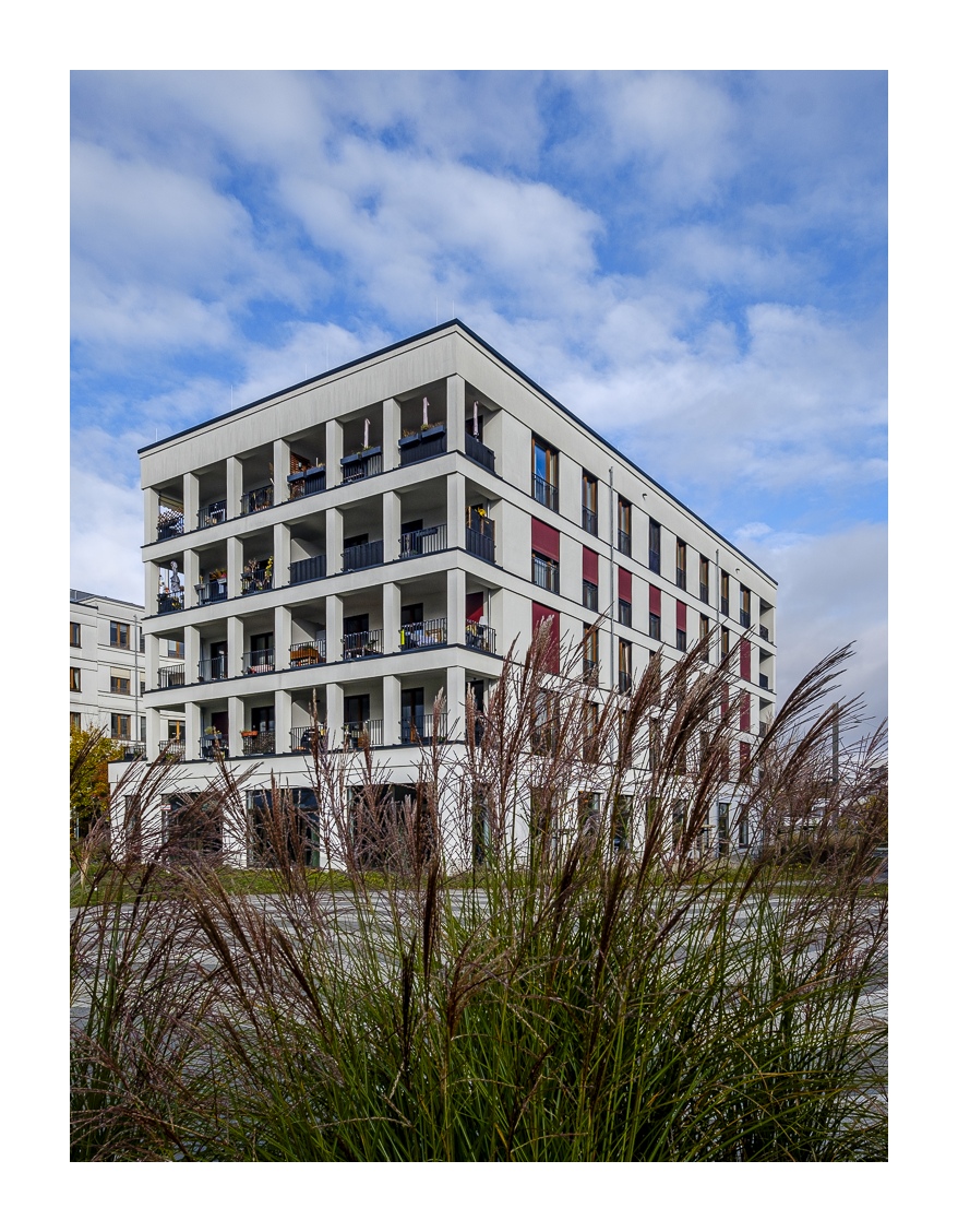 Fotografisch ist die Bahnstadt durchaus interessant. Wir waren knapp zwei Stunden unterwegs und haben allerhand Motive gefunden. Ich muss aber sagen, dass die architektonisch ungewöhnlichsten Gebäude bereits in der ersten Bauphase entstanden sind – die meisten hatte ich vor acht Jahren schon auf dem Schirm. Eine Ausnahme ist das neue Kongresszentrum, dessen großflächige Glasfassaden tolle Spiegelungen liefern. In der übrigen, oft recht einheitlichen Wohnbebauung ist die Motivsuche dagegen nicht so einfach.