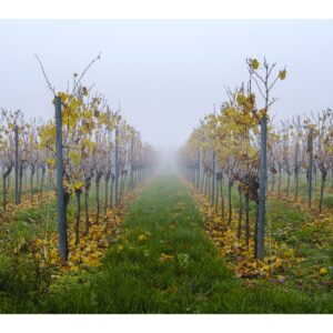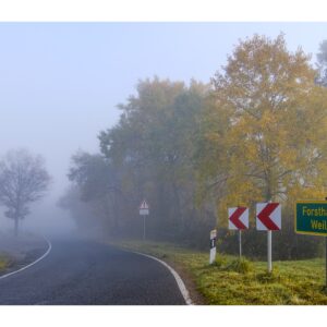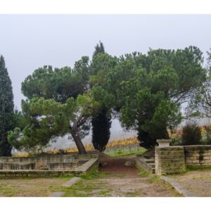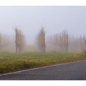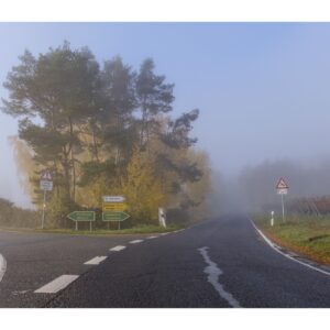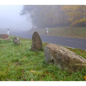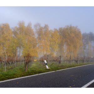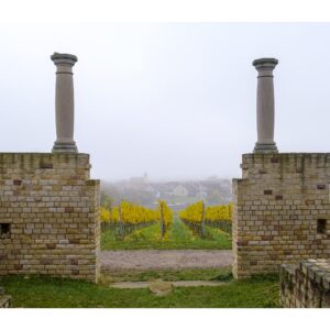 Gerd (www.gerd-stauder.de) und ich sind am Montagmorgen zum Haardtrand westlich von Bad Dürkheim gefahren, um einige stimmungsvolle herbstliche Nebelbilder aufzunehmen. Das wollte mir aber leider nicht so recht gelingen. Der Nebel war einfach nicht fotogen – keine lockeren Nebelschwaden sondern eine mehr oder weniger undurchdringliche Suppe, in der sich kaum Konturen ausmachen ließen. In der Hoffnung auf eine stimmungsvollere Szenerie sind wir dann zur Römervilla bei Ungstein spaziert. Da war der Nebel zwar etwas „dünner“, aber von herbstlicher Stimmung war leider wenig zu spüren.