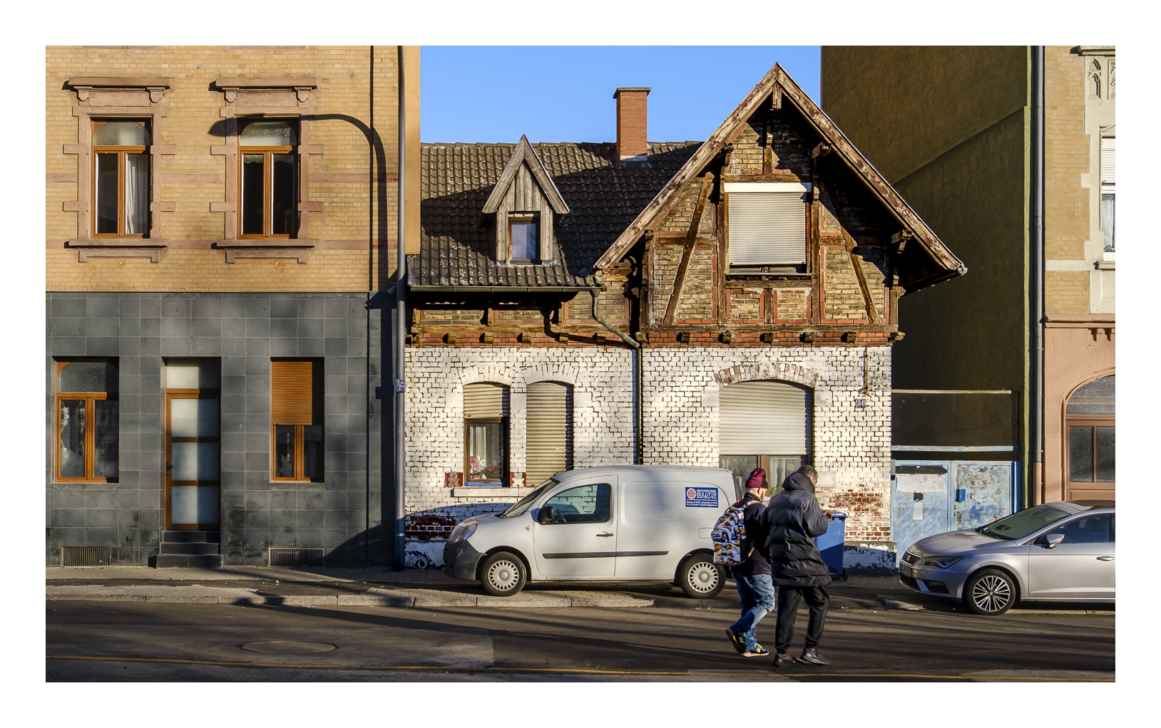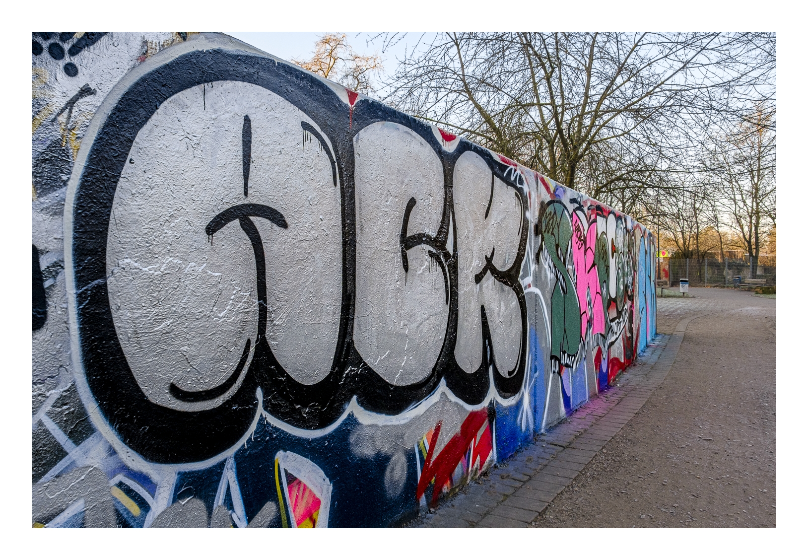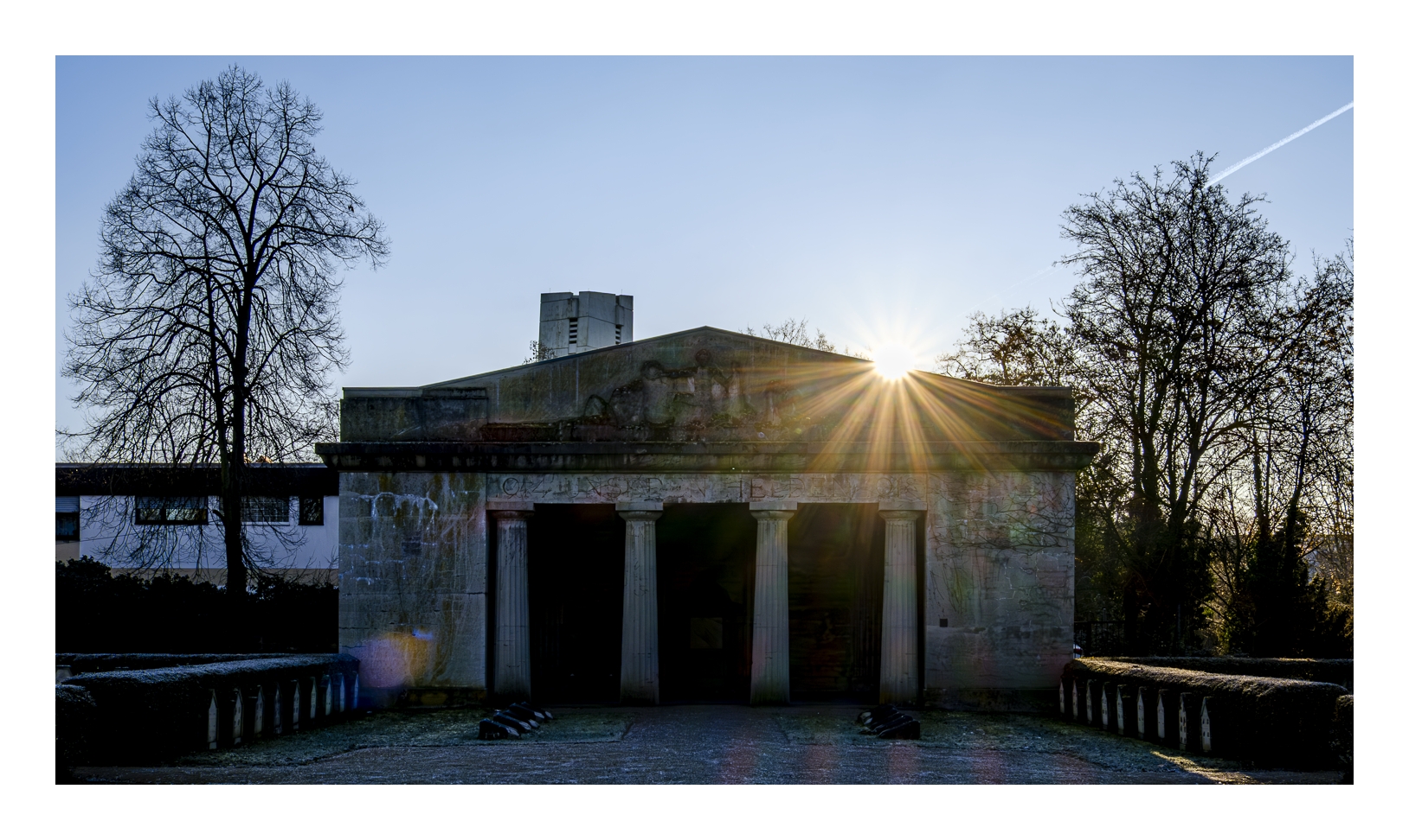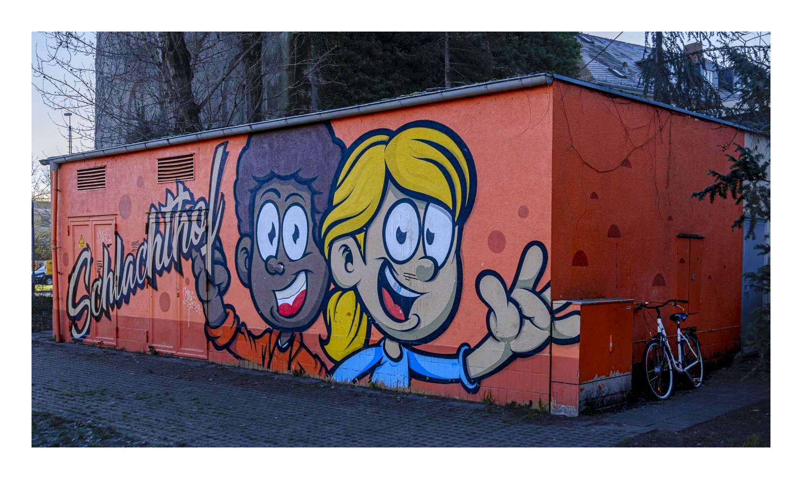 Als Gerd (www.gerd-stauder.de) und ich heute Morgen losgefahren sind, zeigte mein Auto-Thermometer -3 Grad. Obwohl die Sonne heraus kam und uns einen strahlend blauen Himmel bescherte, blieb die Temperatur den ganzen Tag unter dem Gefrierpunkt. Aber das hat uns nicht abgeschreckt. Wir sind zum gleichen Punkt gefahren wie letzte Woche (alter Schlachthof), diesmal aber in die entgegengesetzte Richtung spaziert. Zunächst ging es quer über den Hauptfriedhof bis zur Frankenthaler Straße und dann durch das sog. Schlachthof-Viertel wieder zurück zum Auto. Trotz der Kälte waren wir über anderthalb Stunden unterwegs und am Ende einigermaßen durchgefroren. Dann wurde es Zeit für die obligatorische Nachbesprechung im Café.