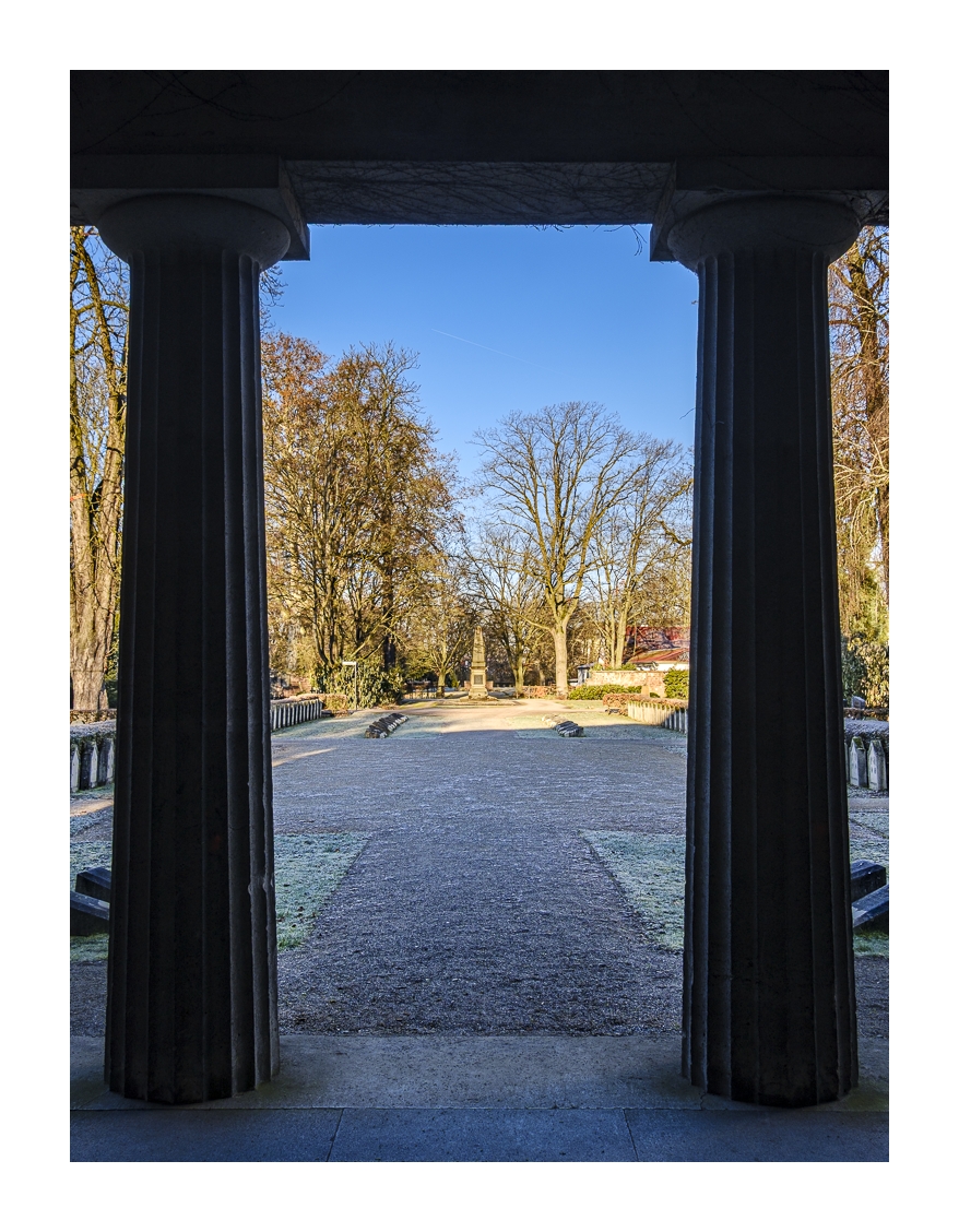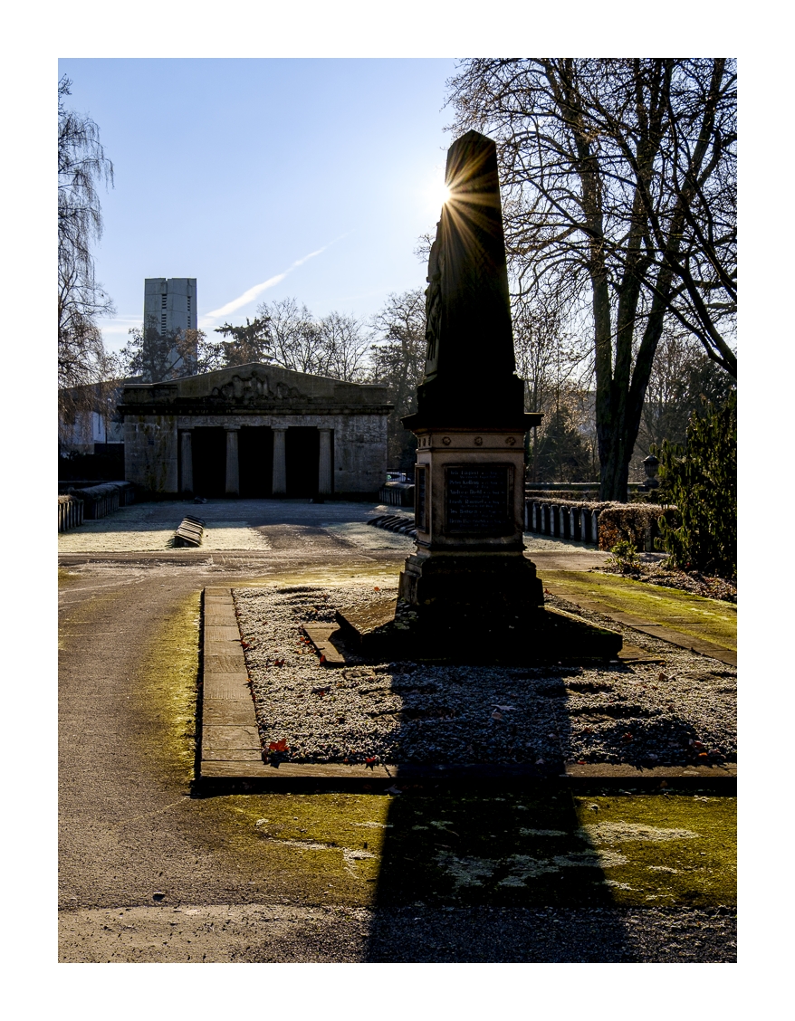 Besonders auf dem Friedhof ist mir die Motivsuche ziemlich schwer gefallen. Ich habe einiges versucht und nachher wieder verworfen. Der hohe Kontrastumfang war auch nicht so einfach zu beherrschen. Später im Schlachthof-Viertel wurde die Motivlage dann etwas besser, richtig tolle Perspektiven kann man aber in einem solchen Wohnviertel nicht erwarten. Auf jeden Fall war es mal wieder eine lehrreiche Tour unter dem Motto: Finde lohnende Motive im Alltäglichen!