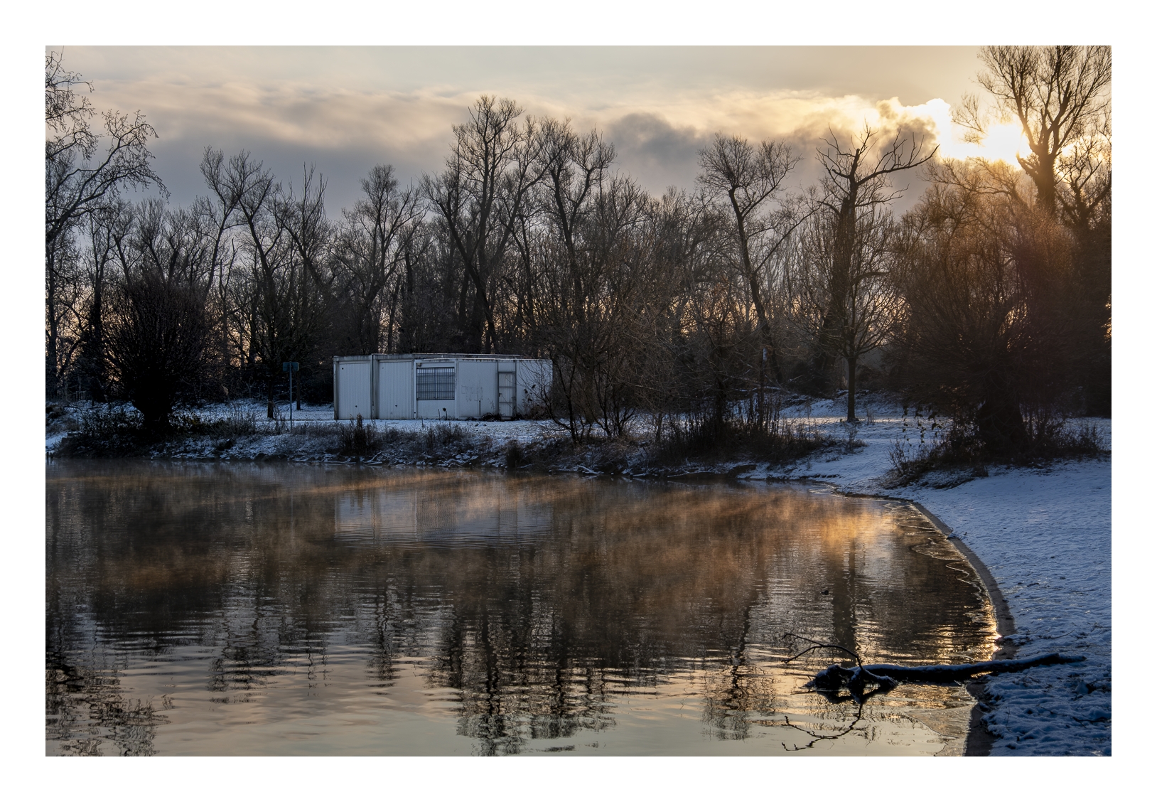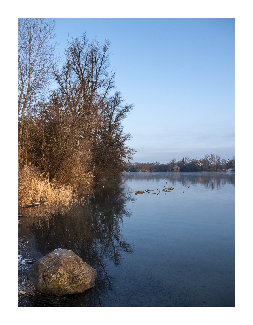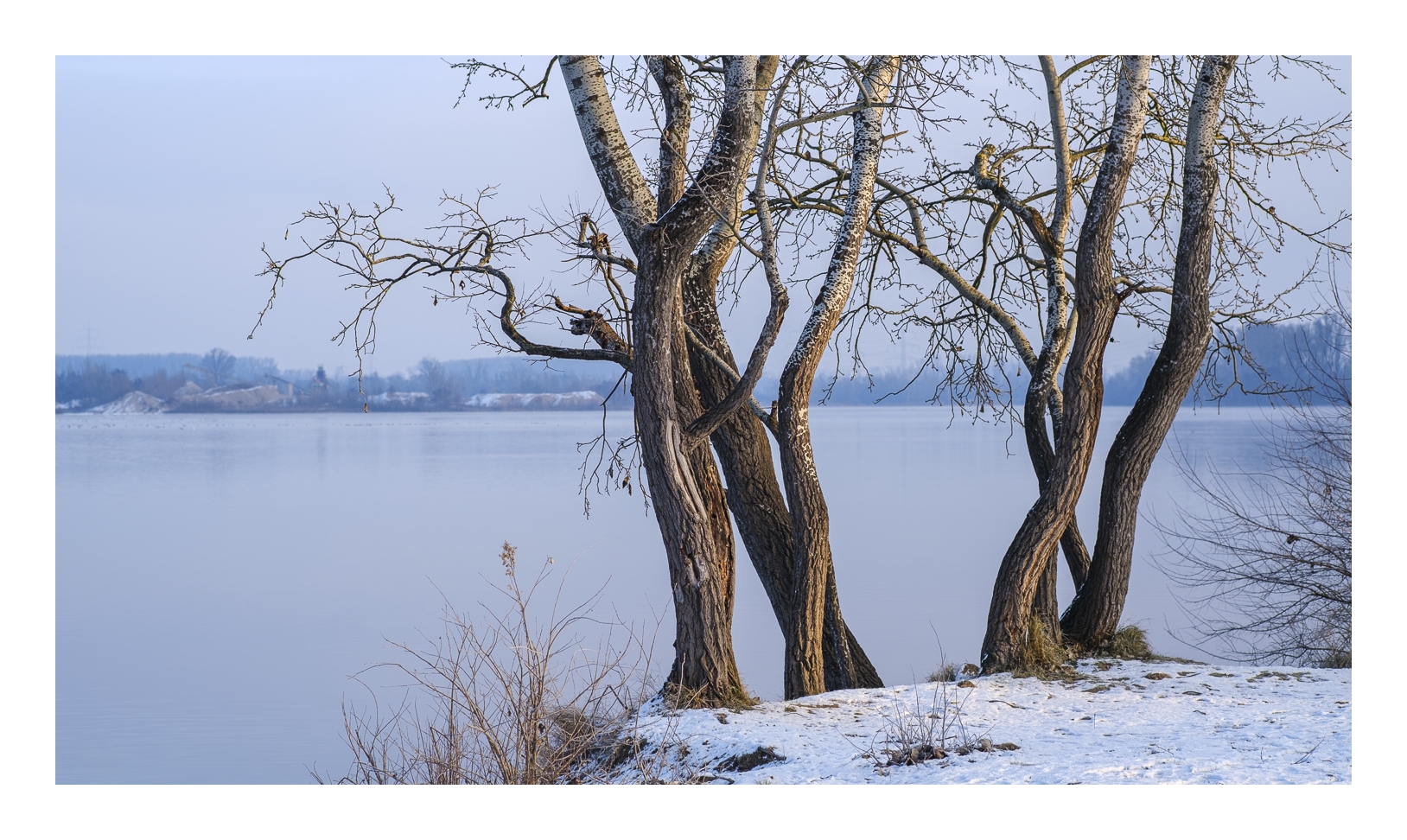 Als ich heute Morgen ins Auto gestiegen bin, zeigte das Thermometer -7 Grad. So niedrige Temperaturen kommen bei uns nicht sehr häufig vor. Aber das konnte uns nicht abschrecken. Zusammen mit Gerd (www.gerd-stauder.de) bin ich zum Silbersee gefahren. Dort wollten wir nach Schnee- und Eisstrukturen Ausschau halten, denn damit hatten wir vor ein paar Jahren sehr gute Erfahrungen gemacht (-> klick!). Diesmal kam es aber leider ganz anders, denn von den ersehnten Eisstrukturen gab es keine Spur! Es muss wohl daran liegen, dass die Luft in den letzten Tagen zu trocken war. Wir haben daher nach anderen Motiven gesucht, was weder einfach noch sonderlich ergiebig war. Aber was soll’s – es war trotzdem eine entspannte und lehrreiche kleine Tour. Nach knapp anderthalb Stunden waren wir gut durchgefroren und haben uns zur Nachbesprechung ins Café gerettet.