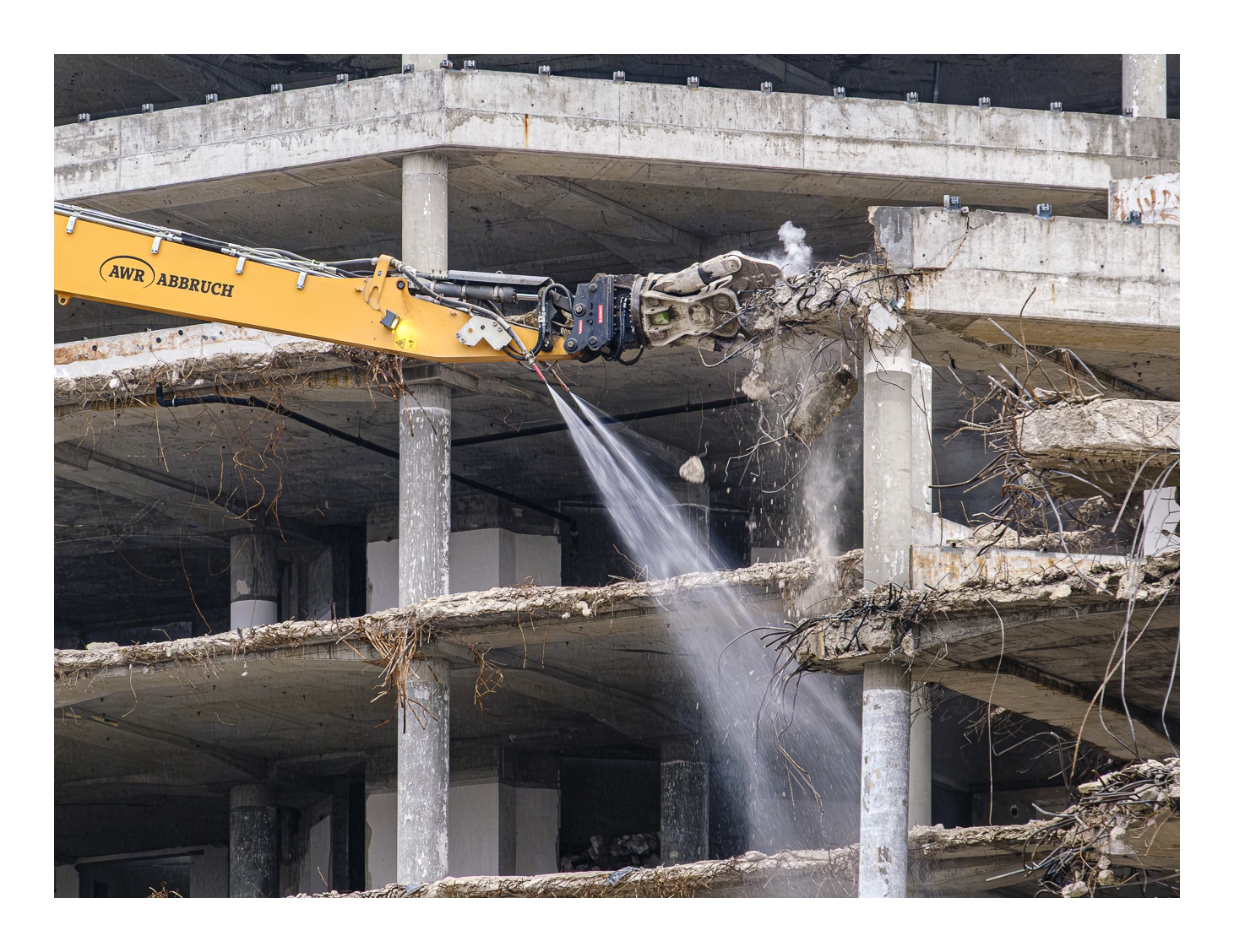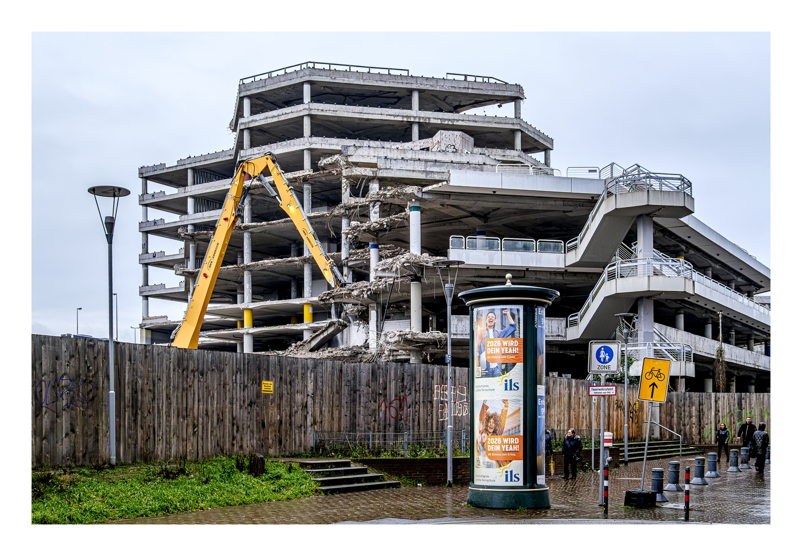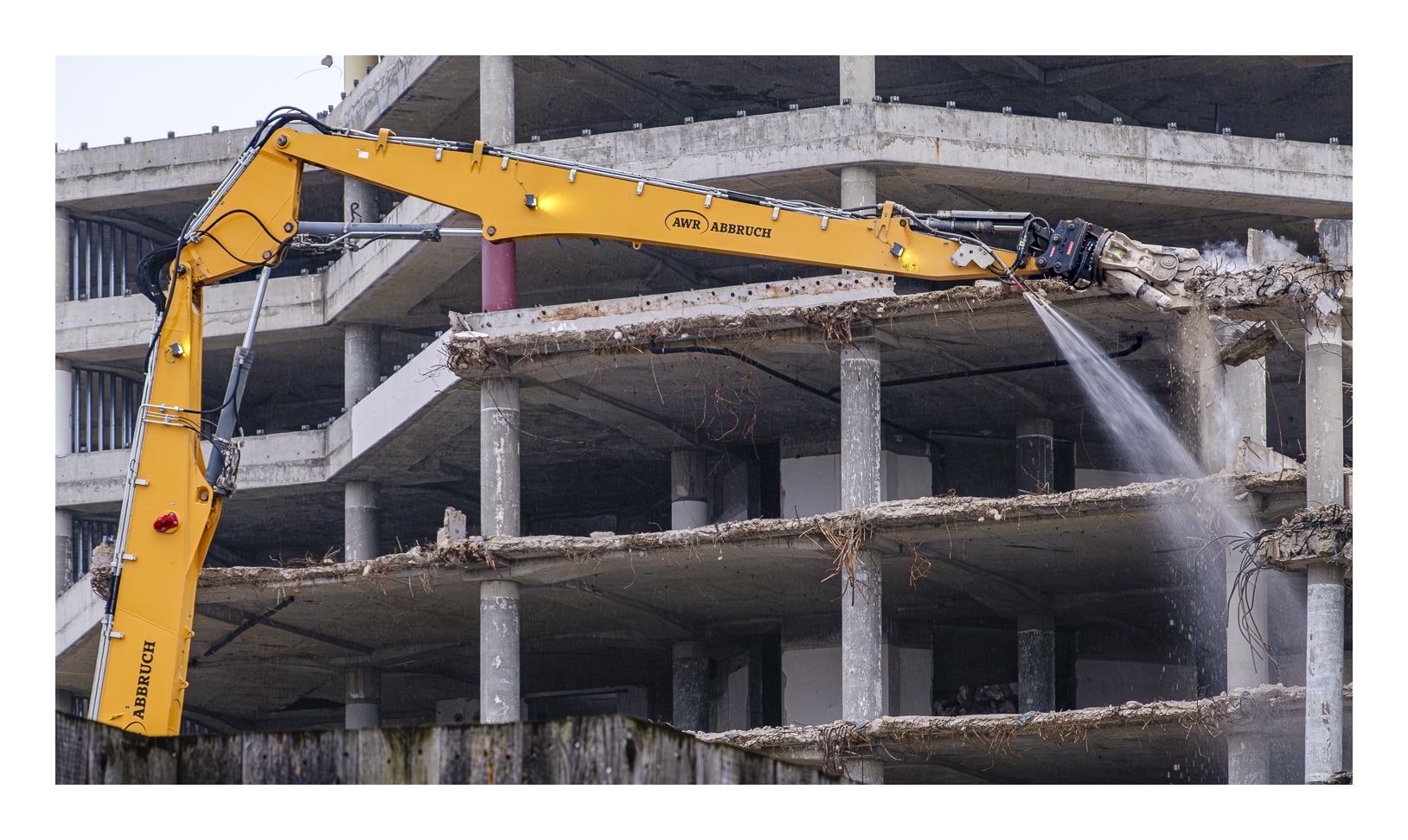 Schon wieder trübes und regnerisches Wetter! Wir wollten trotzdem rausfahren und fotografieren. Gerd (www.gerd-stauder.de) hatte die Idee, mal wieder die Rauhaus-Center-Baustelle in der Ludwigshafener Innenstadt ins Auge zu fassen. Dieses ehemalige Wahrzeichen der Stadt muss nämlich der neuen Stadtstraße weichen und der Abriss ist mittlerweile ziemlich weit fortgeschritten. Ich habe schon mehrfach Bilder von dieser Großbaustelle gezeigt (-> klick, -> klick …).