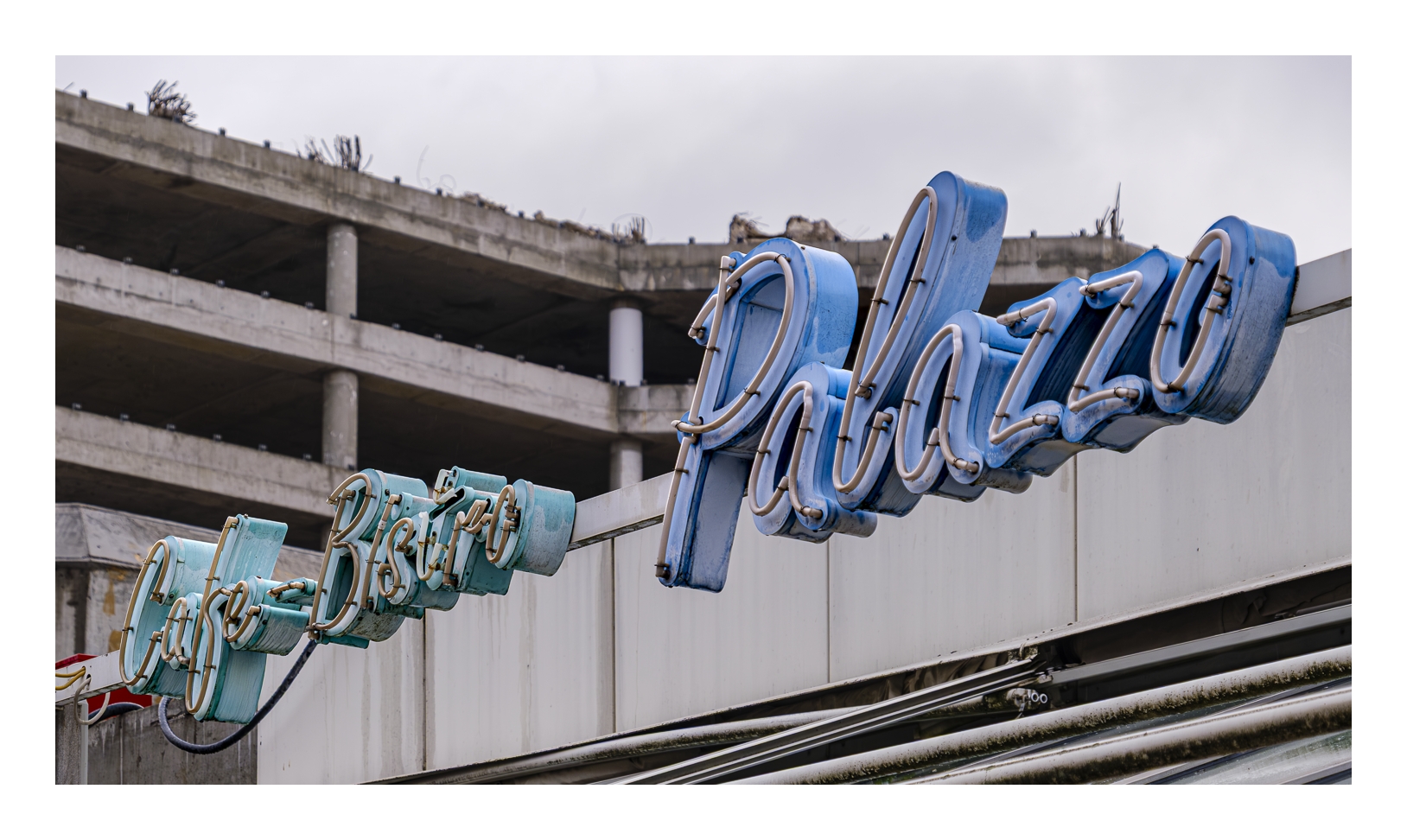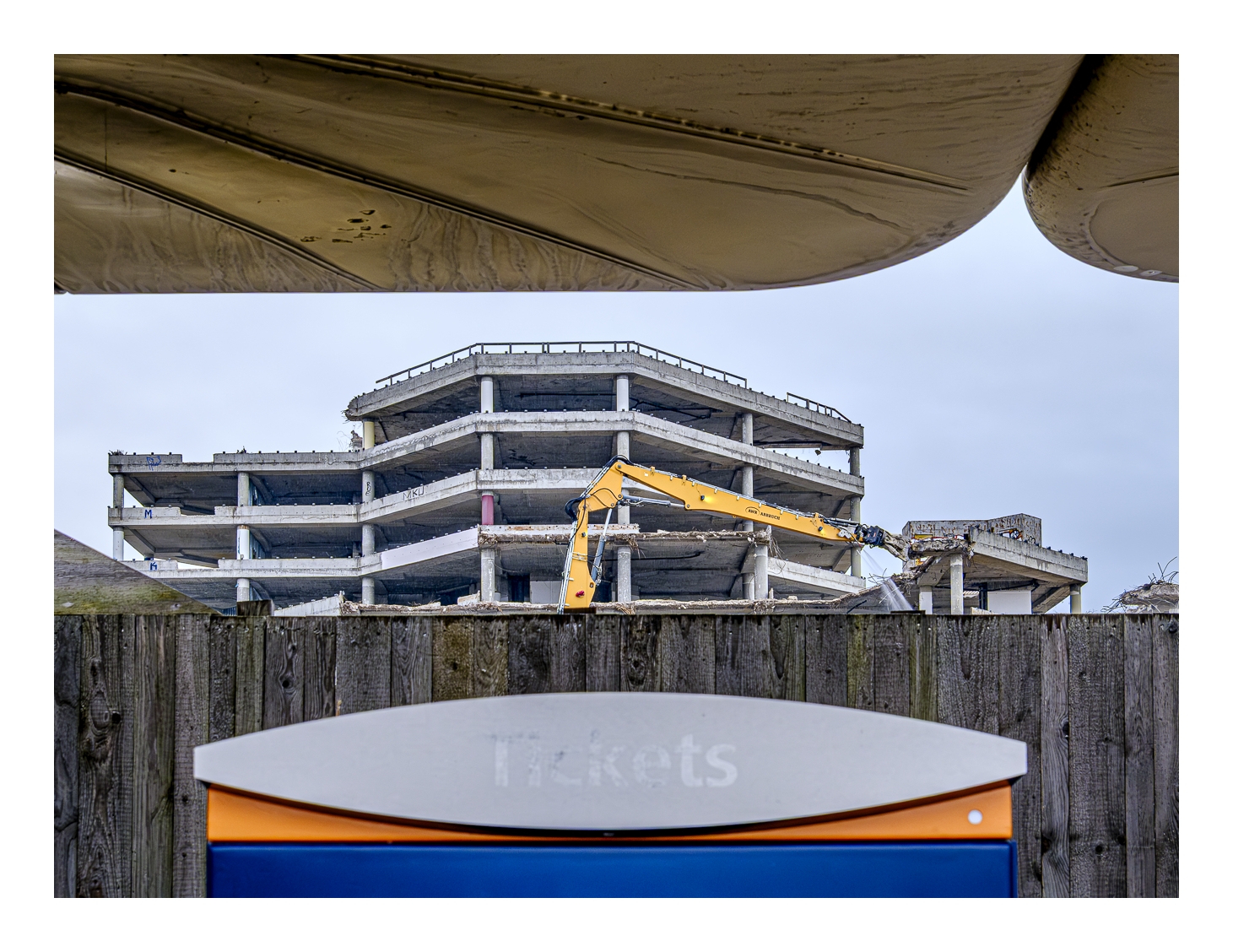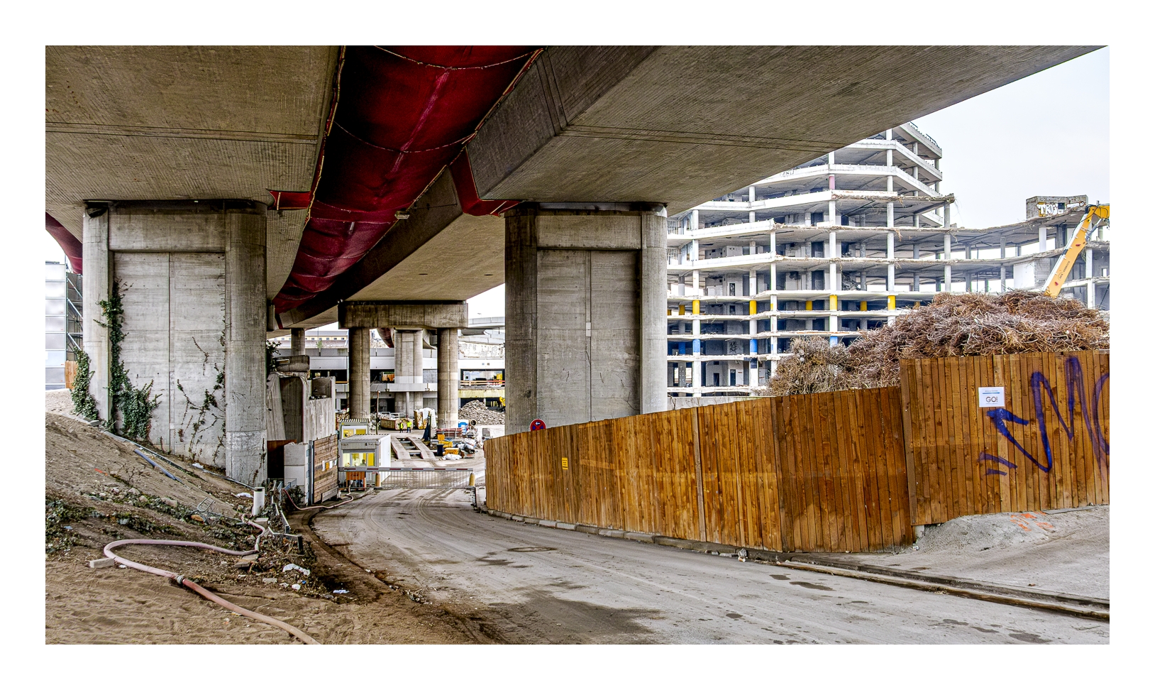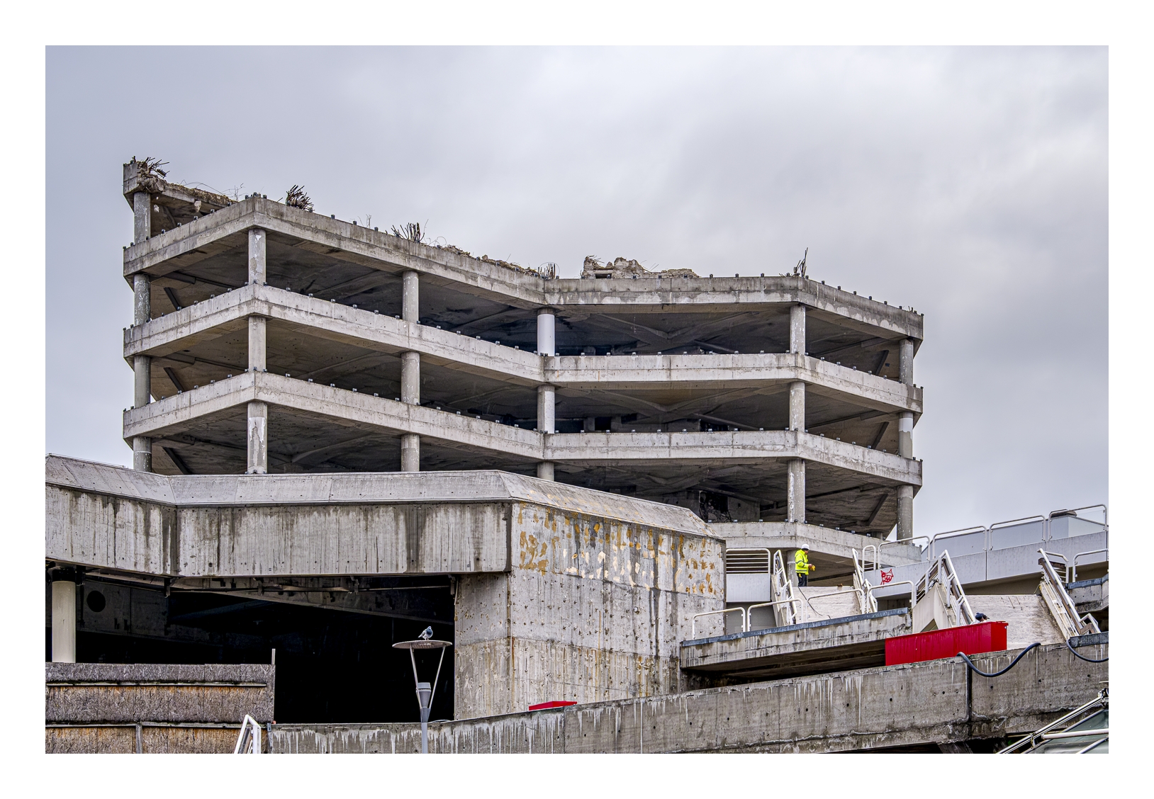 Schon wieder trübes und regnerisches Wetter! Wir wollten trotzdem rausfahren und fotografieren. Gerd (www.gerd-stauder.de) hatte die Idee, mal wieder die Rauhaus-Center-Baustelle in der Ludwigshafener Innenstadt ins Auge zu fassen. Dieses ehemalige Wahrzeichen der Stadt muss nämlich der neuen Stadtstraße weichen und der Abriss ist mittlerweile ziemlich weit fortgeschritten. Ich habe schon mehrfach Bilder von dieser Großbaustelle gezeigt (-> klick, -> klick …).