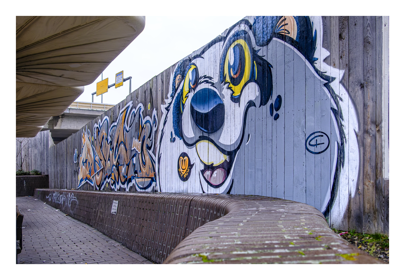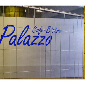 Wir sind zur Rhein-Galerie gefahren und haben zunächst das Standardfoto vom obersten Parkdeck aus aufgenommen. Danach haben wir bei leichtem Nieselregen mit der Umrundung der Baustelle begonnen. Als wir beim Europaplatz ankamen, wurde der Regen kräftiger und wir haben uns zum Umkehren entschlossen. Immerhin wartete ja die Einkehr in einem gemütlichen, warmen und trockenen Café auf uns!
