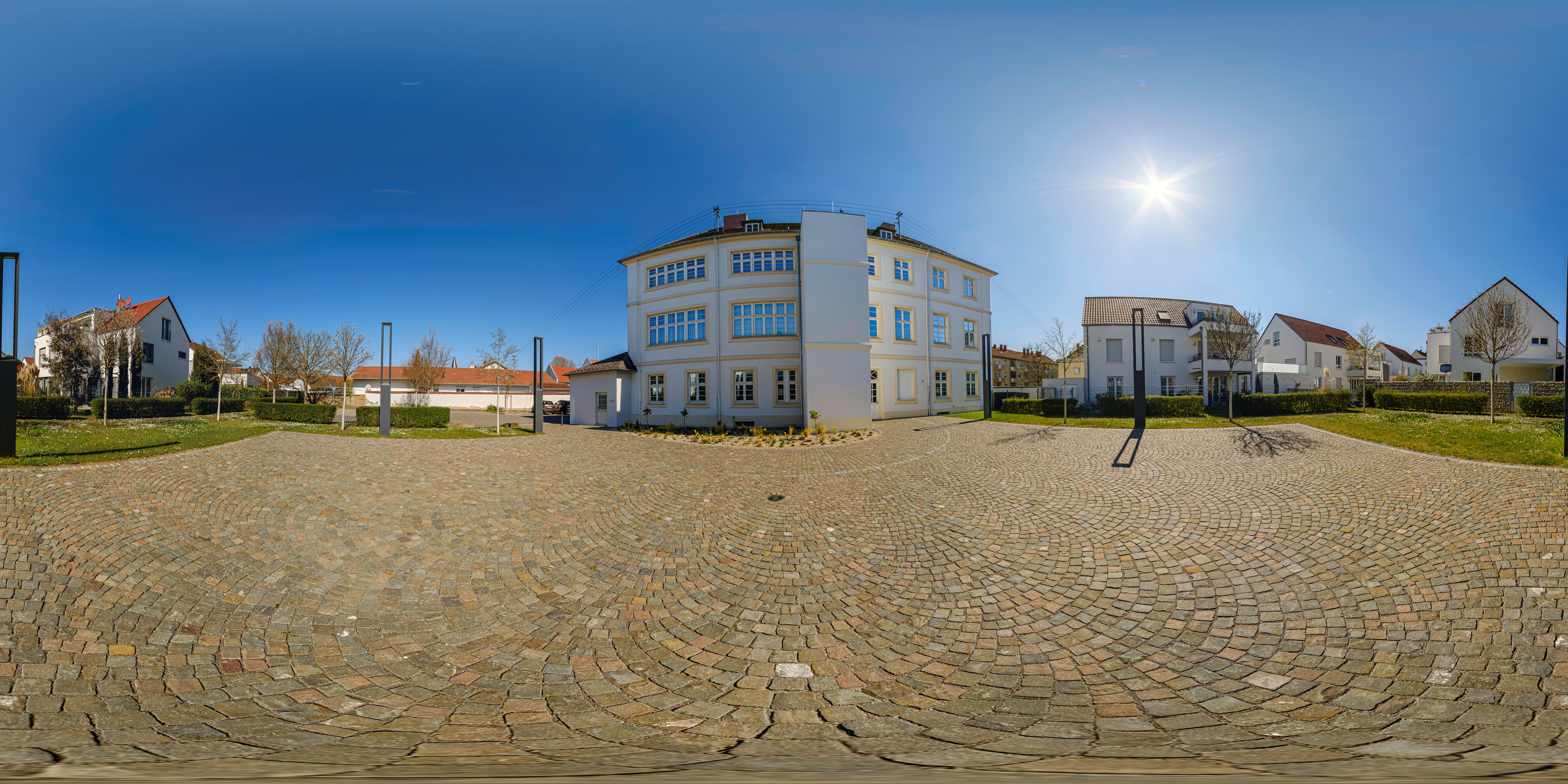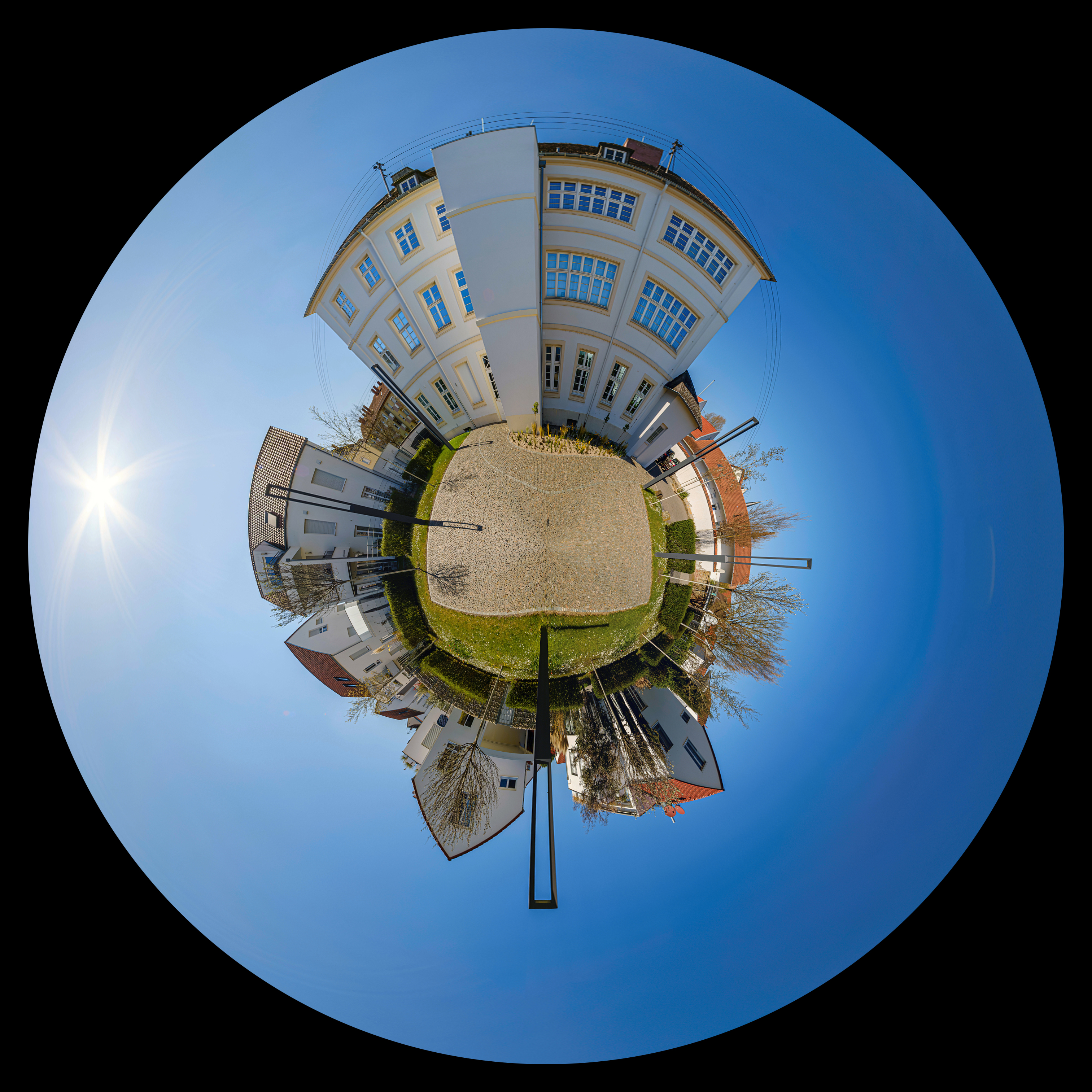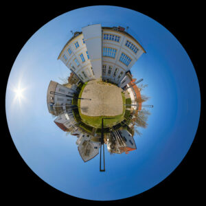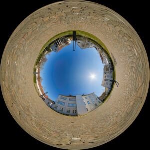 Kurz zur Technik: Fotografiert habe ich mit der Fuji X-T4, dem 12mm Fischauge von Samyang und einem manuellen Nodalpunktadapter von PanoMaxx. Damit habe ich jeweils 5 waagrechte Aufnahmen mit 72° Abstand sowie je eine Aufnahme senkrecht nach oben und senkrecht nach unten erstellt. Die Aufnahmen wurden zunächst mit Lightroom bearbeitet, danach mit Hugin und Pano2VR zu virtuellen Welten zusammengefügt. Für das Retuschieren der Stativbeine habe ich Photoshop verwendet.