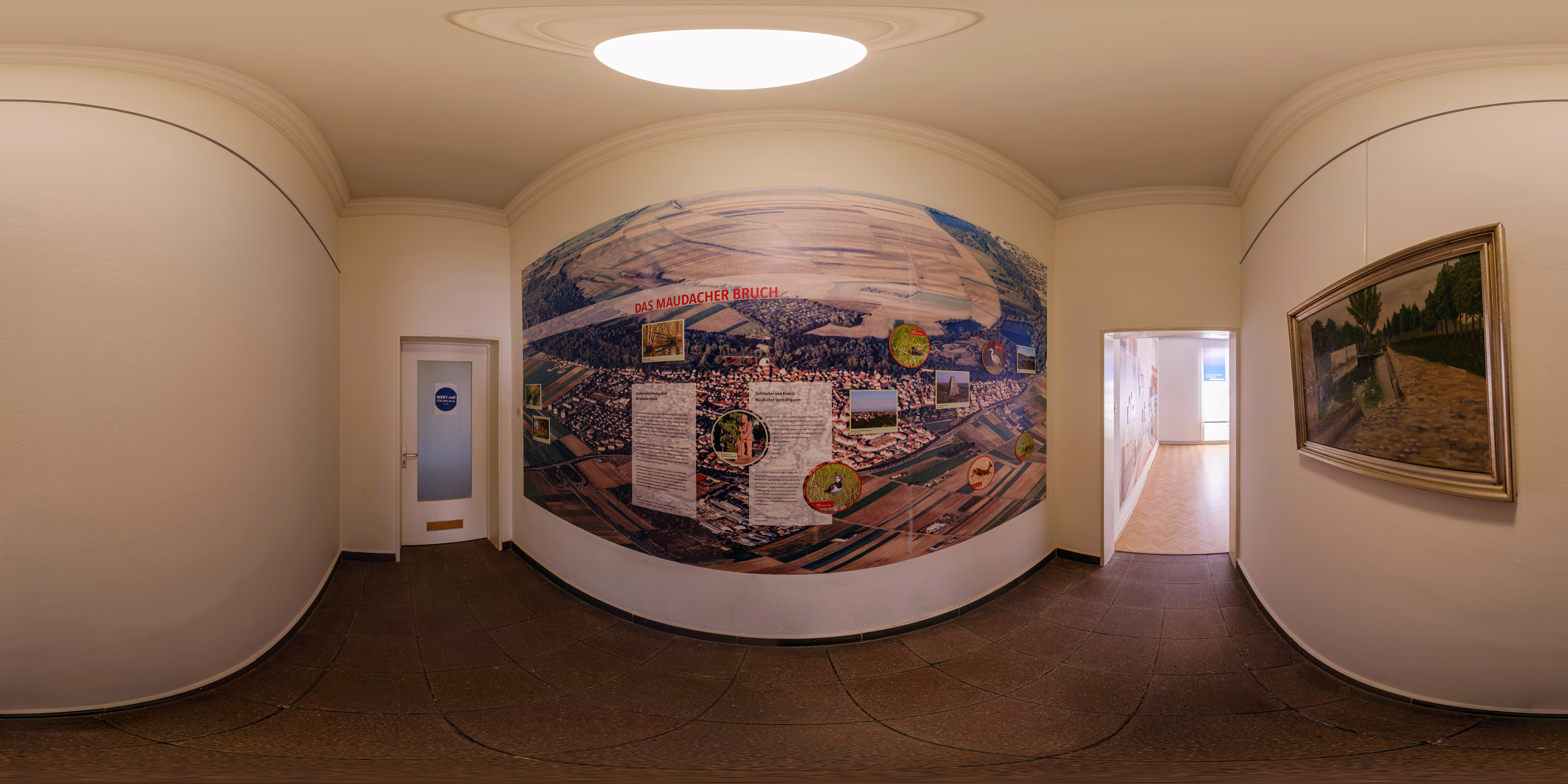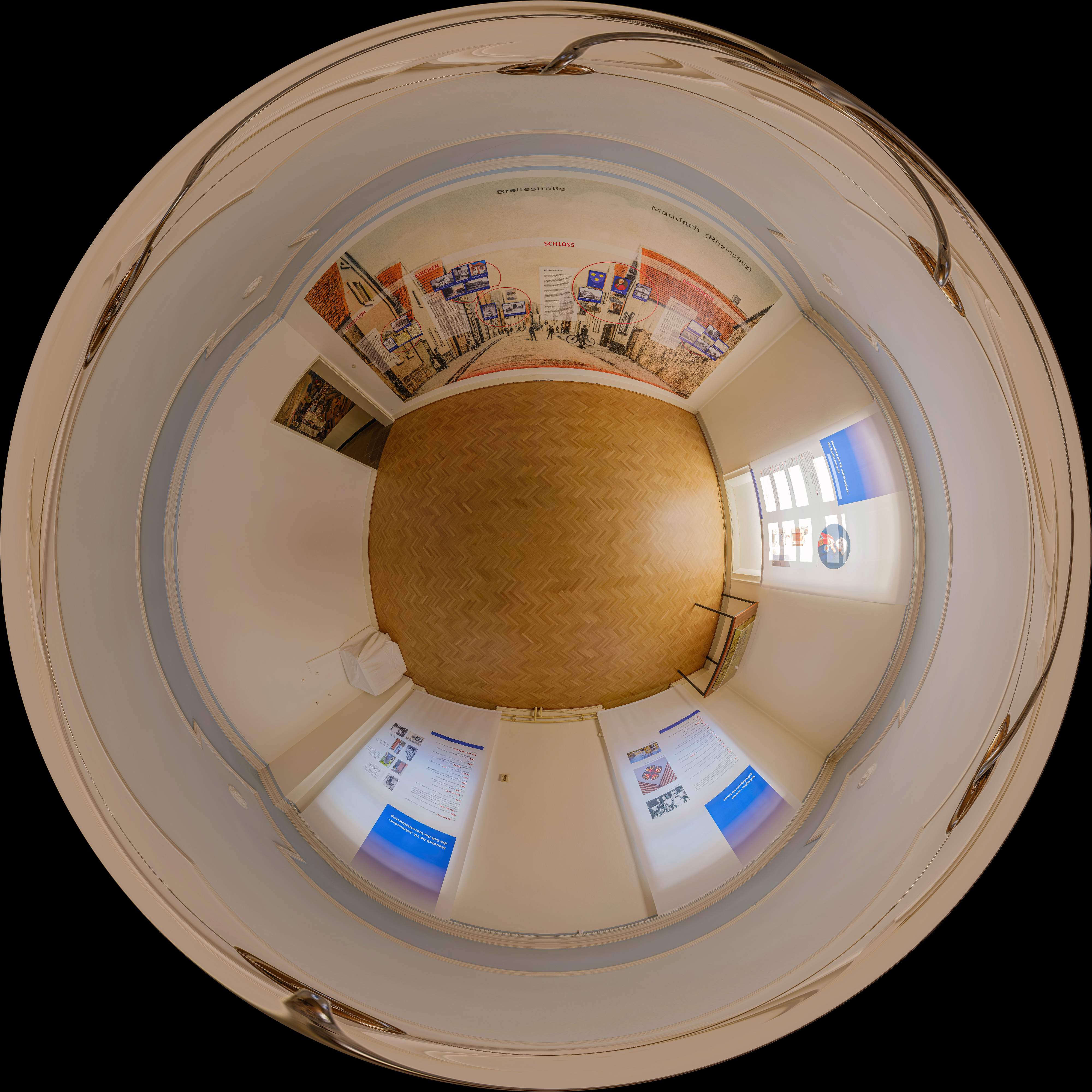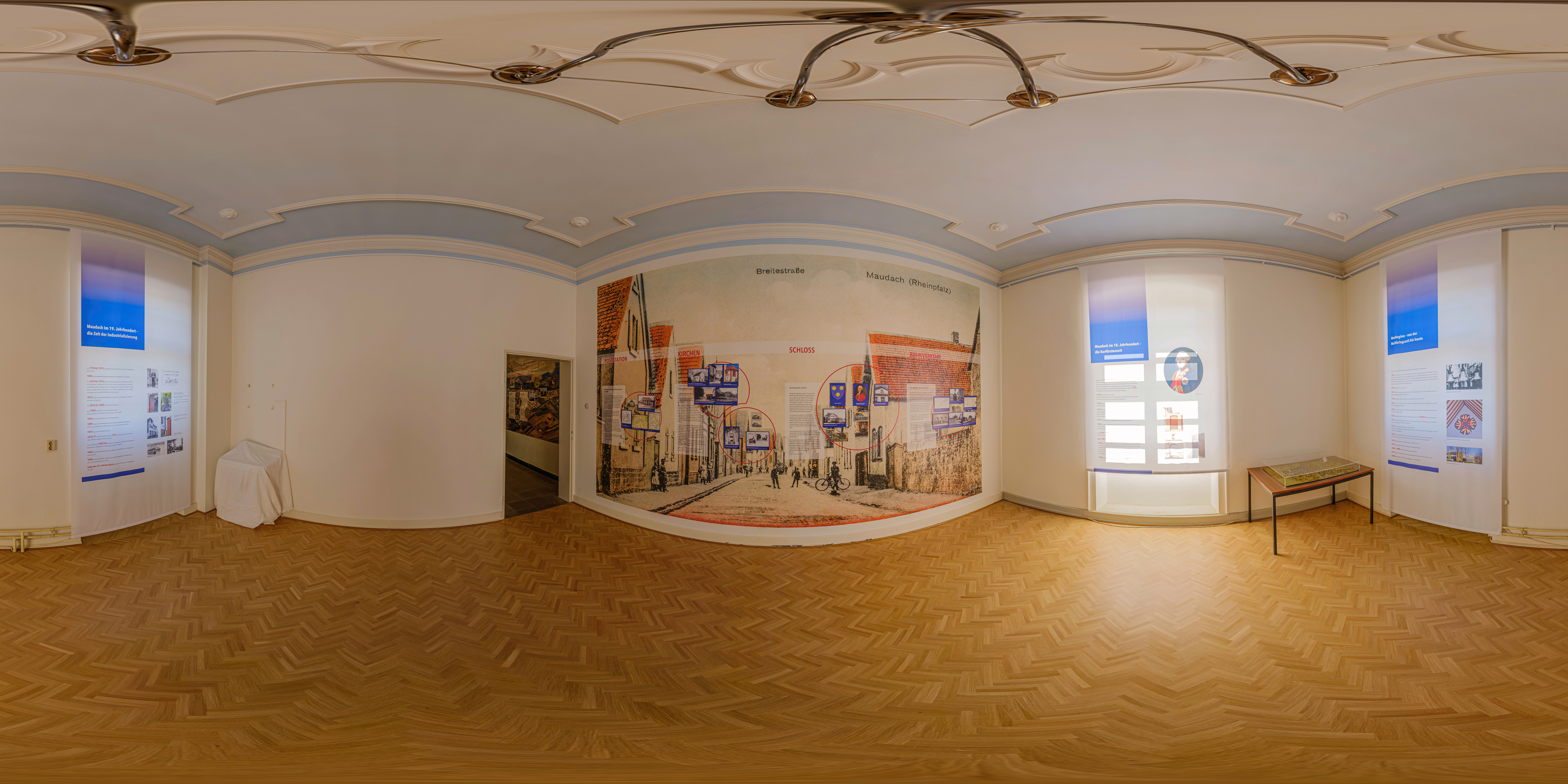 In den letzte Jahren hat sich im Maudacher Schloss einiges getan. Vor allem wurde ein Aufzug angebaut und somit ein barrierefreier Zugang zu den oberen Stockwerken mit Trausaal und Museumsräumen geschaffen. Zudem wurde eine ehemalige Abstellkammer (samt kleinem Flur) zu einem neuen Ausstellungsraum umgestaltet. Daher war es an der Zeit, die neuen Ansichten und Räume fotografisch zu dokumentieren. Am letzten Donnerstag hatte ich die Gelegenheit, vier neue Kugelpanoramen anzufertigen. Vielen Dank an Christian Karpp vom Förderverein Maudacher Jubiläen, der mir diese Aufnahmen ermöglicht hat!
