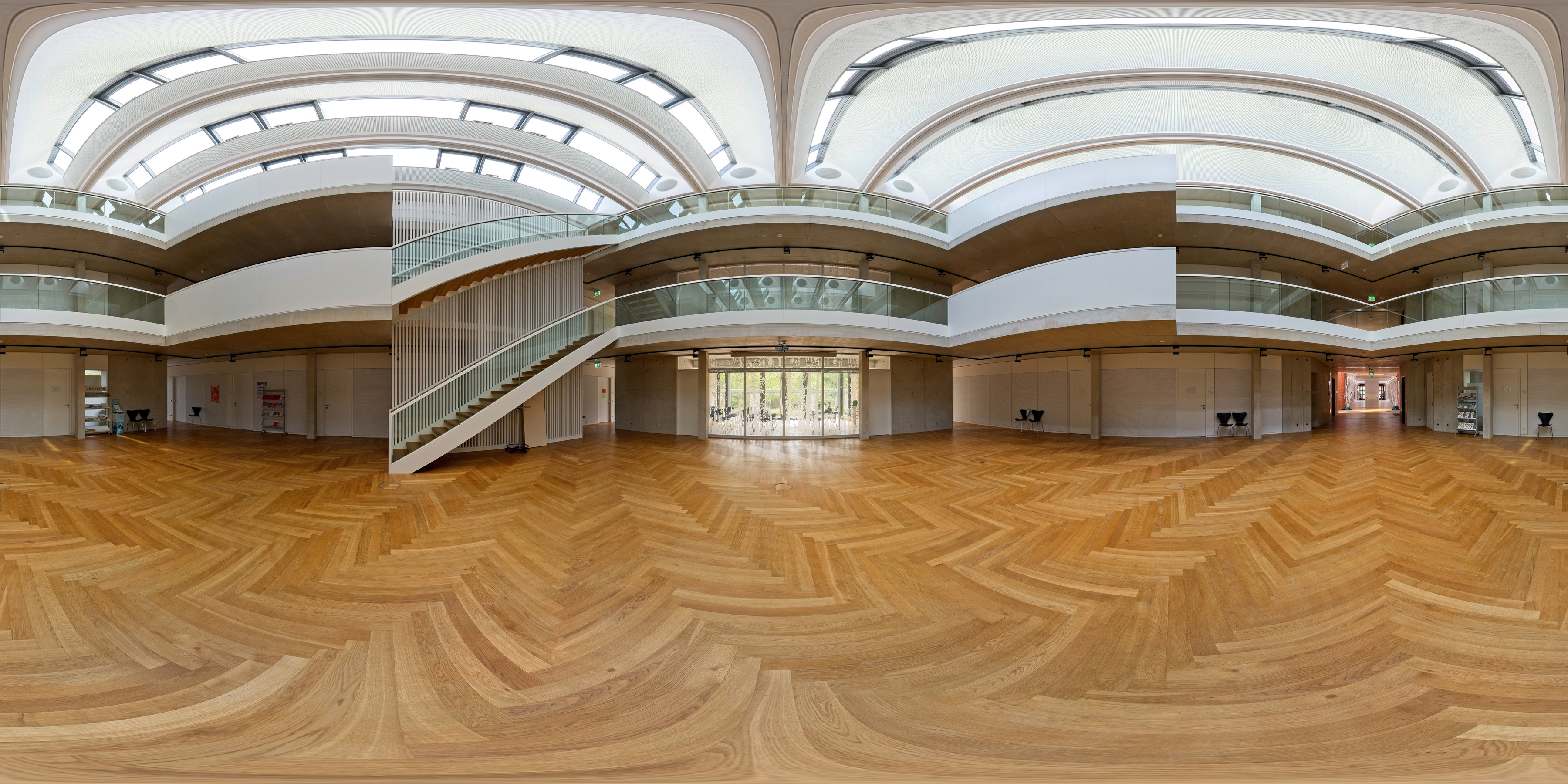 Gerd (www.gerd-stauder.de) hatte die Idee, bei unserer Fahrt zur Eremitage einen Abstecher zum neuen Rathaus in Waghäusel zu machen. Und tatsächlich – dieses Gebäude bietet eine Reihe interessanter Motive. Die moderne Architektur zeichnet sich durch große, helle Flächen und klare Sichtlinien aus. Das zentrale Foyer, über das alle drei Stockwerke erschlossen werden, eignet sich zudem bestens für ein Kugelpanorama. Besonders erwähnenswert: Die freundlichen Mitarbeiter der Stadtverwaltung, die uns schon im Vorfeld die Fotogenehmigung gegeben hatten. Alles in allem mal wieder eine sehr interessante Fototour!