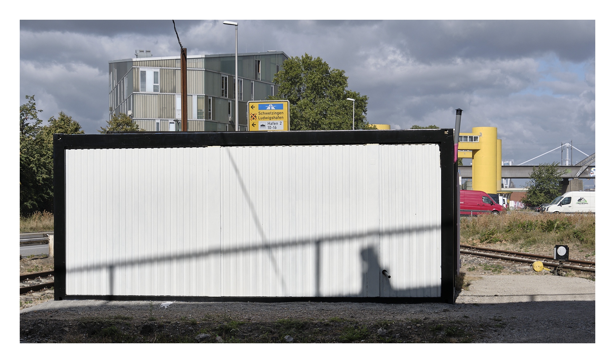 Unser nächstes Ziel war die Pop-Akademie im Mannheimer Stadtteil Jungbusch. Wir haben eine gemütliche Runde um den betreffenden Gebäudekomplex gedreht und nach Motiven gesucht. Auch dem weithin sichtbaren, eingezäunten Sportplatz auf dem Dach der Jungbusch-Halle haben wir einen Besuch abgestattet.