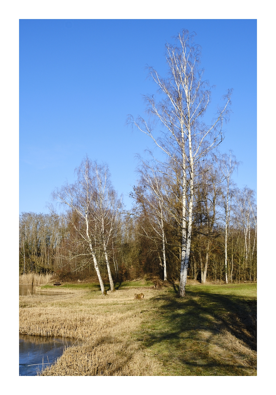 Schon auf der Hinfahrt hatten wir neben der Straße beim Naturschutzgebiet Erdekaut einen schönen Birkenhain entdeckt. Dem statteten wir auf dem Rückweg noch einen kurzen Besuch ab.